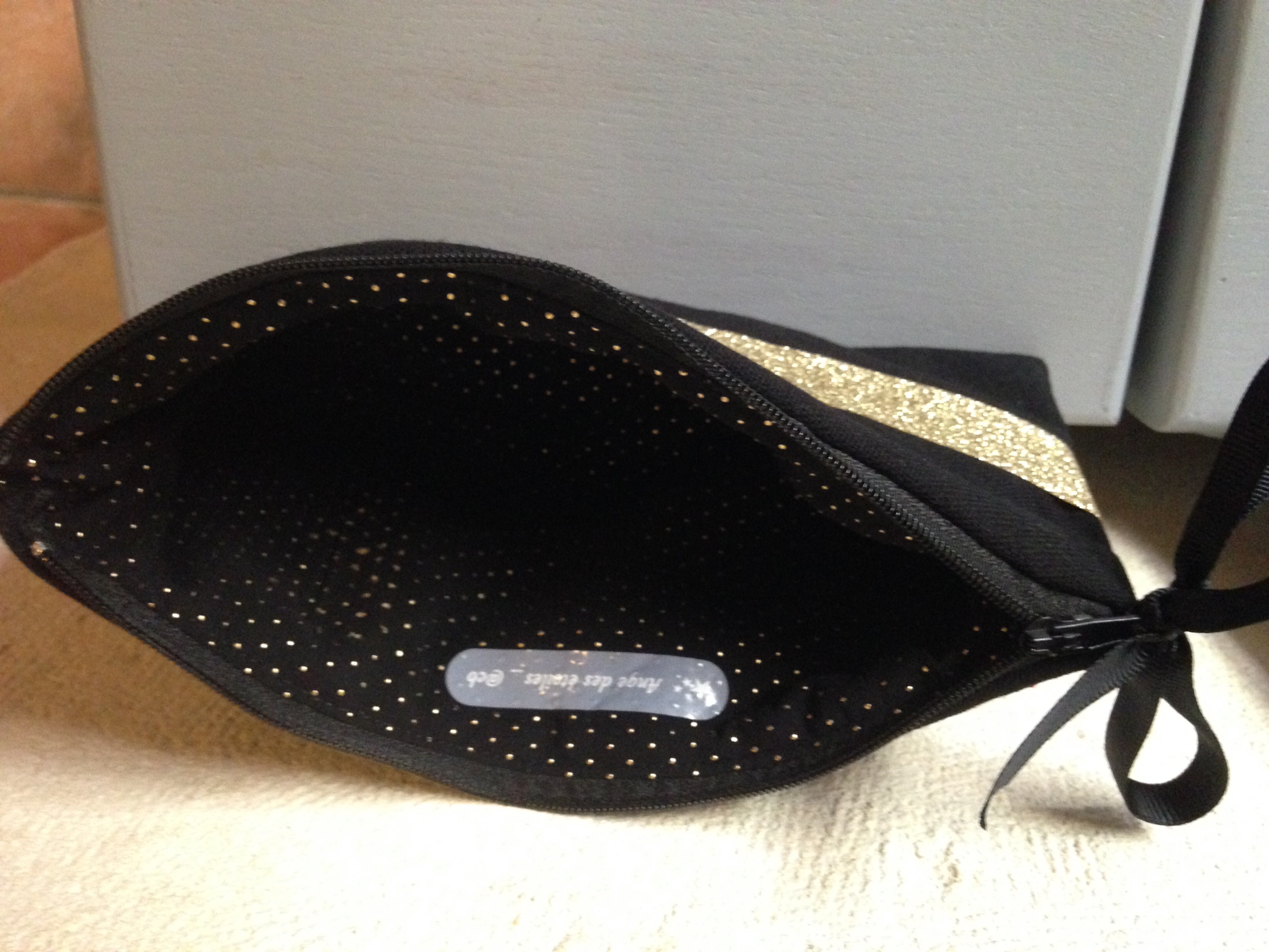 TroussesTrousse camel façon peau d’autruche intérieur coton blanc à pois dorés : 10€ 27 septembre 2016 angedesetoiles_@cb