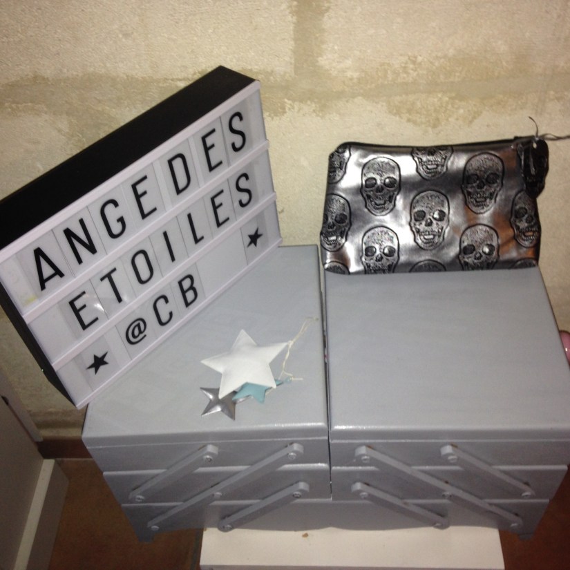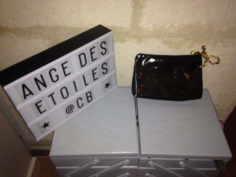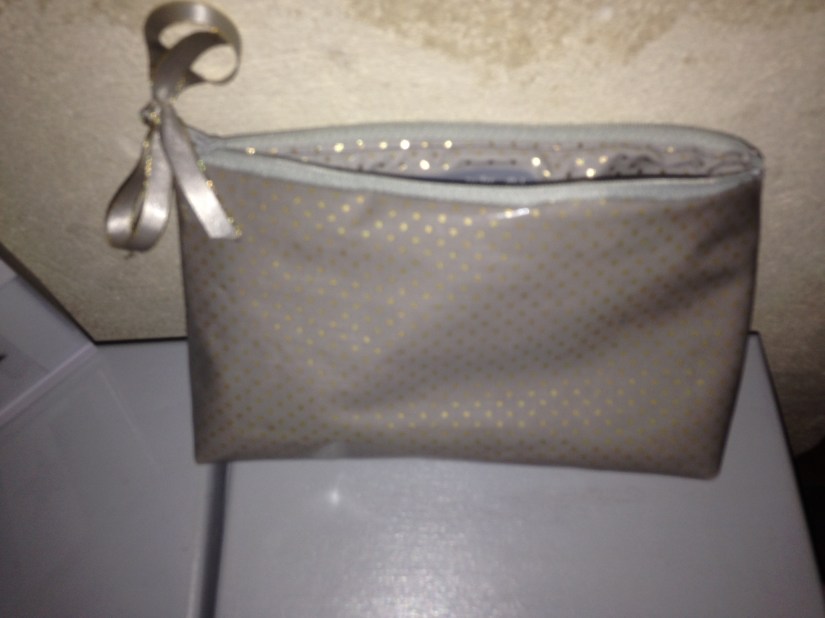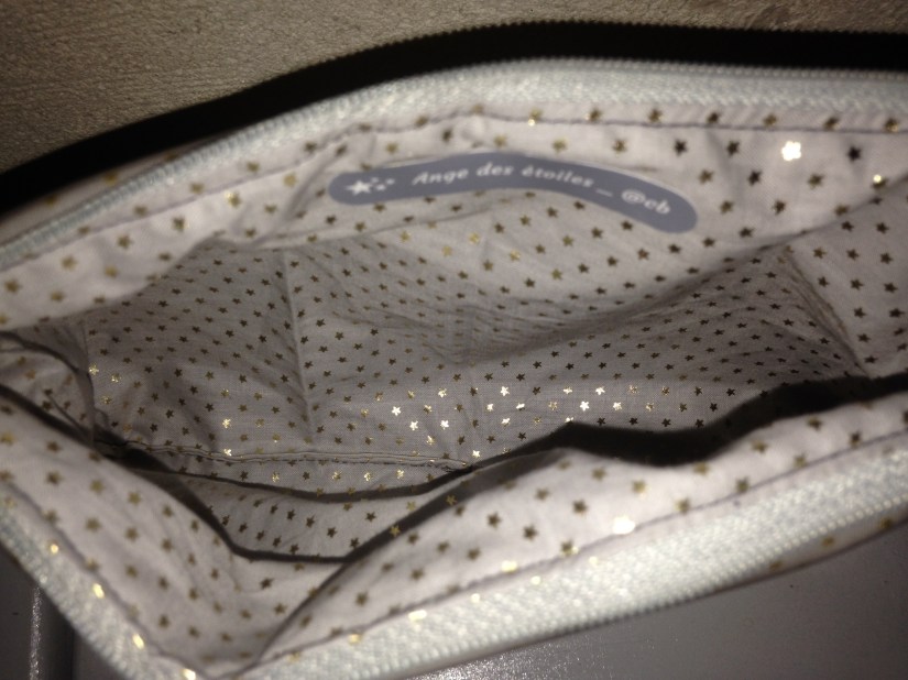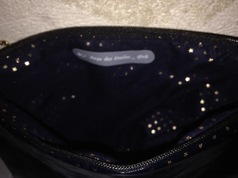 Trousse tissu enduit gris étoiles dorées intérieur coton : 12€