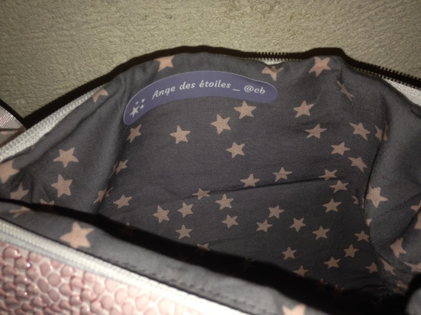 Trousse façon croco rose pâle tissu intérieur étoiles : 12€