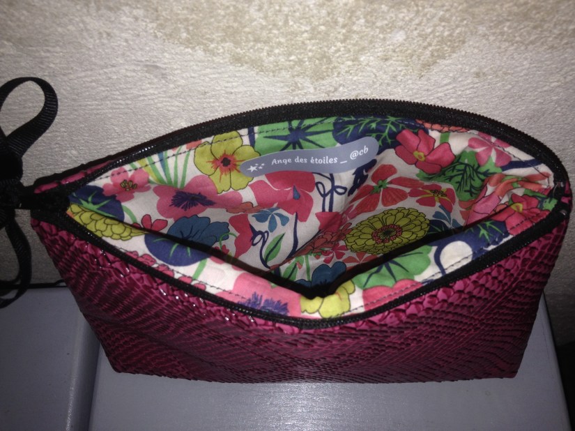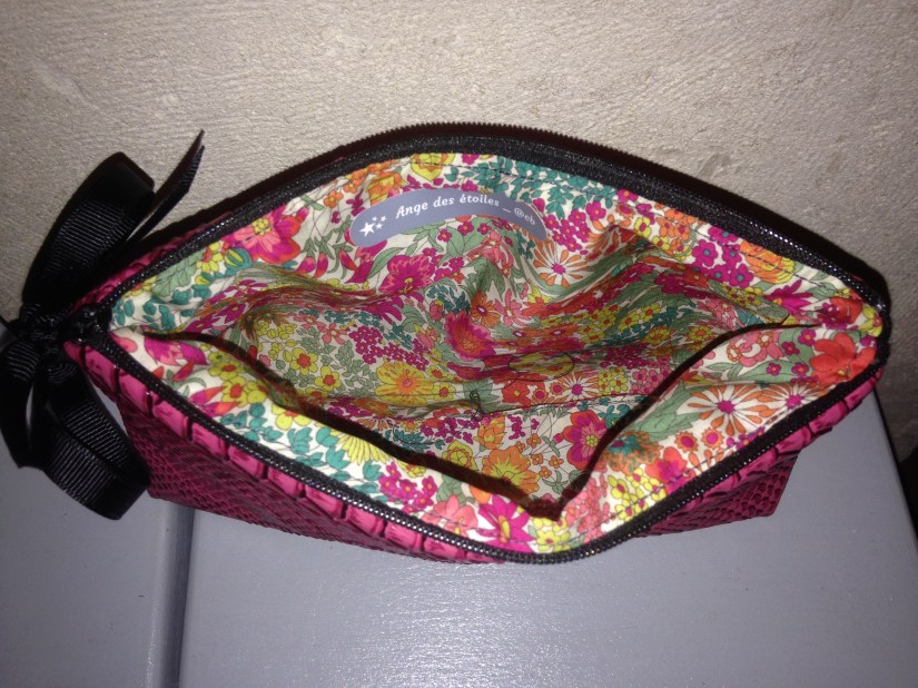 Trousse façon croco rose intérieur tissu liberty : 12€