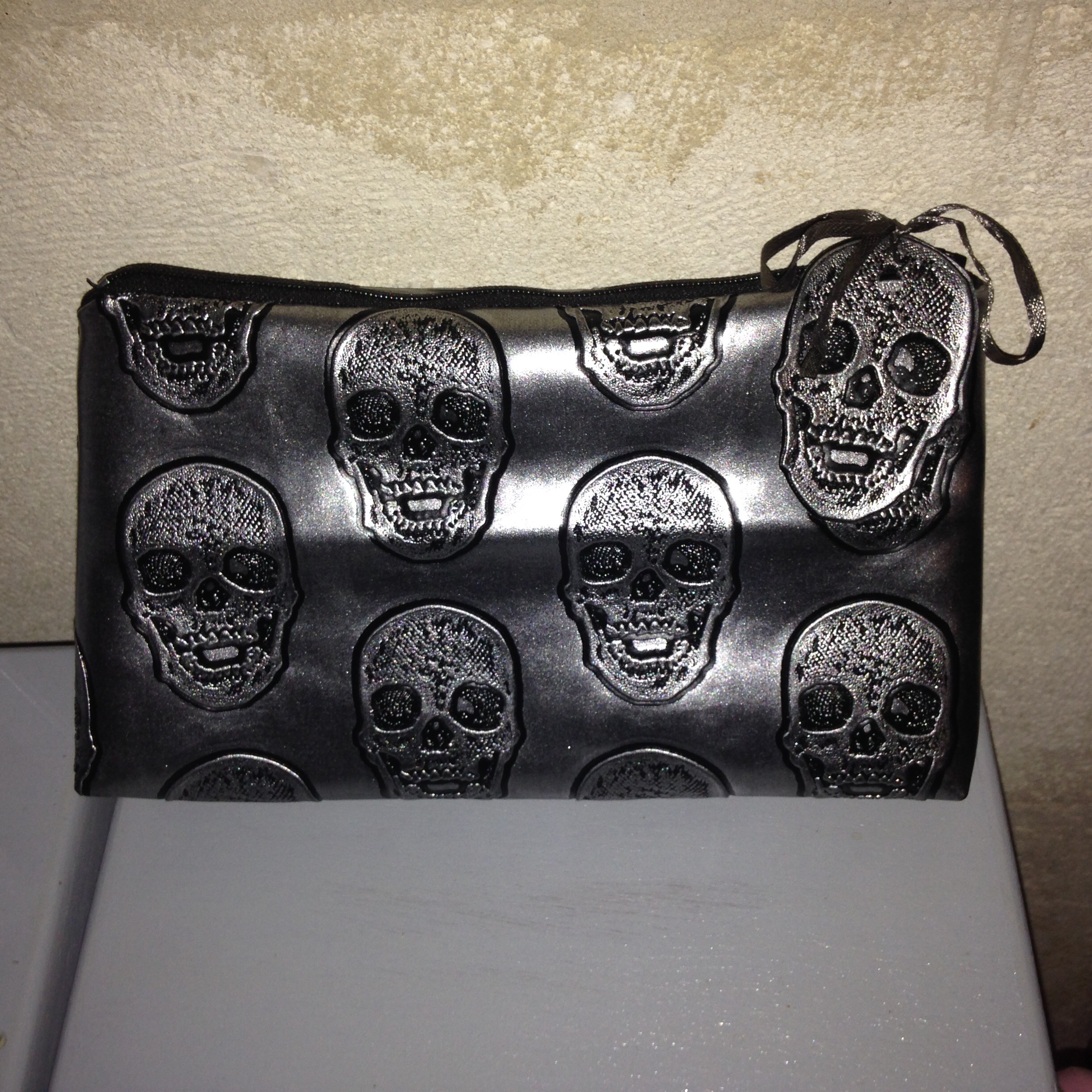 Trousse façon croco rose pâle tissu intérieur étoiles : 12€