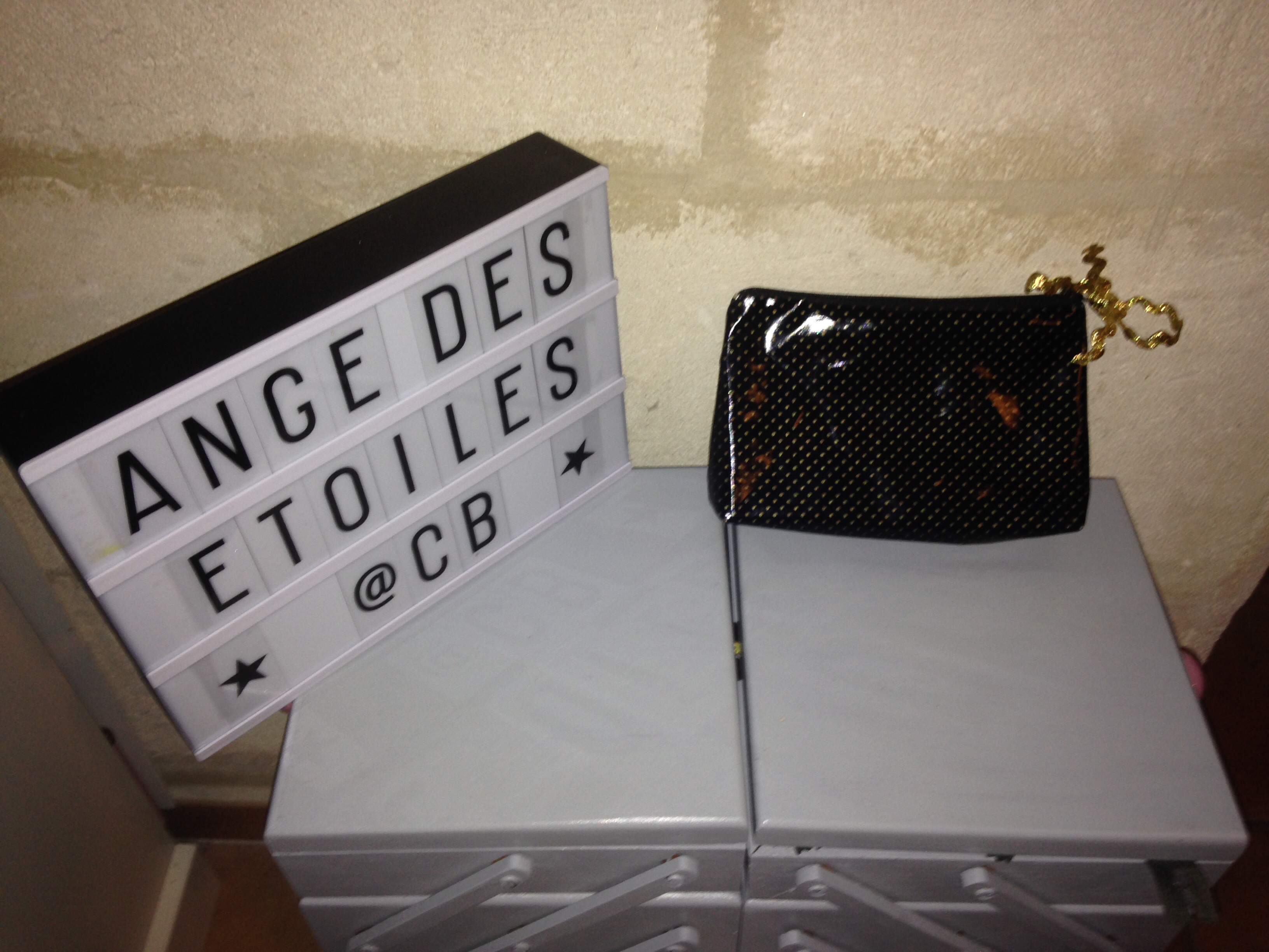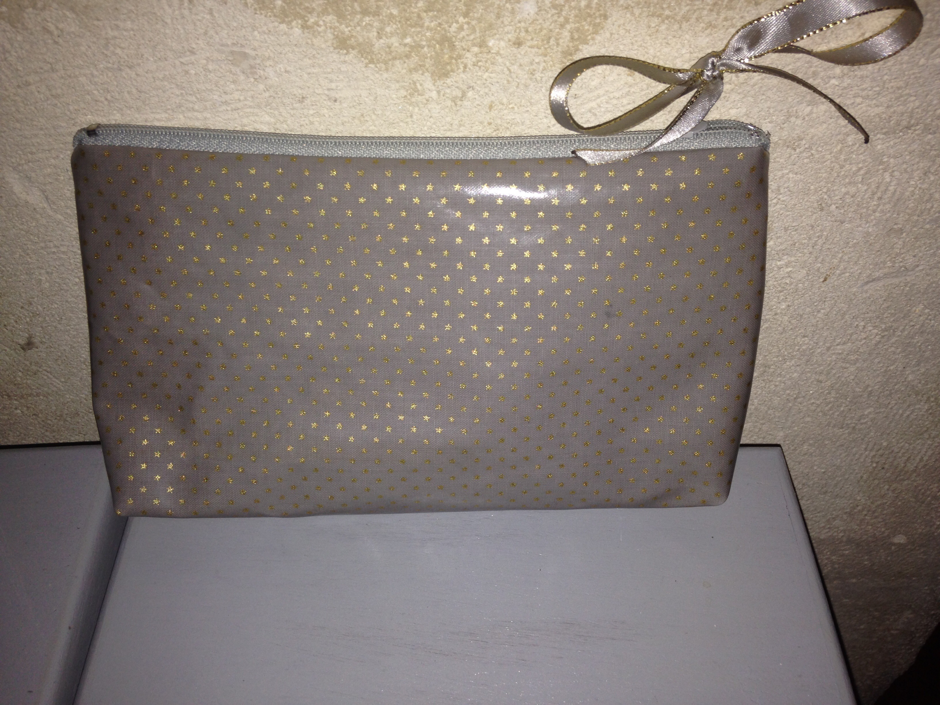 Trousse tissu enduit gris étoiles dorées intérieur coton : 12€