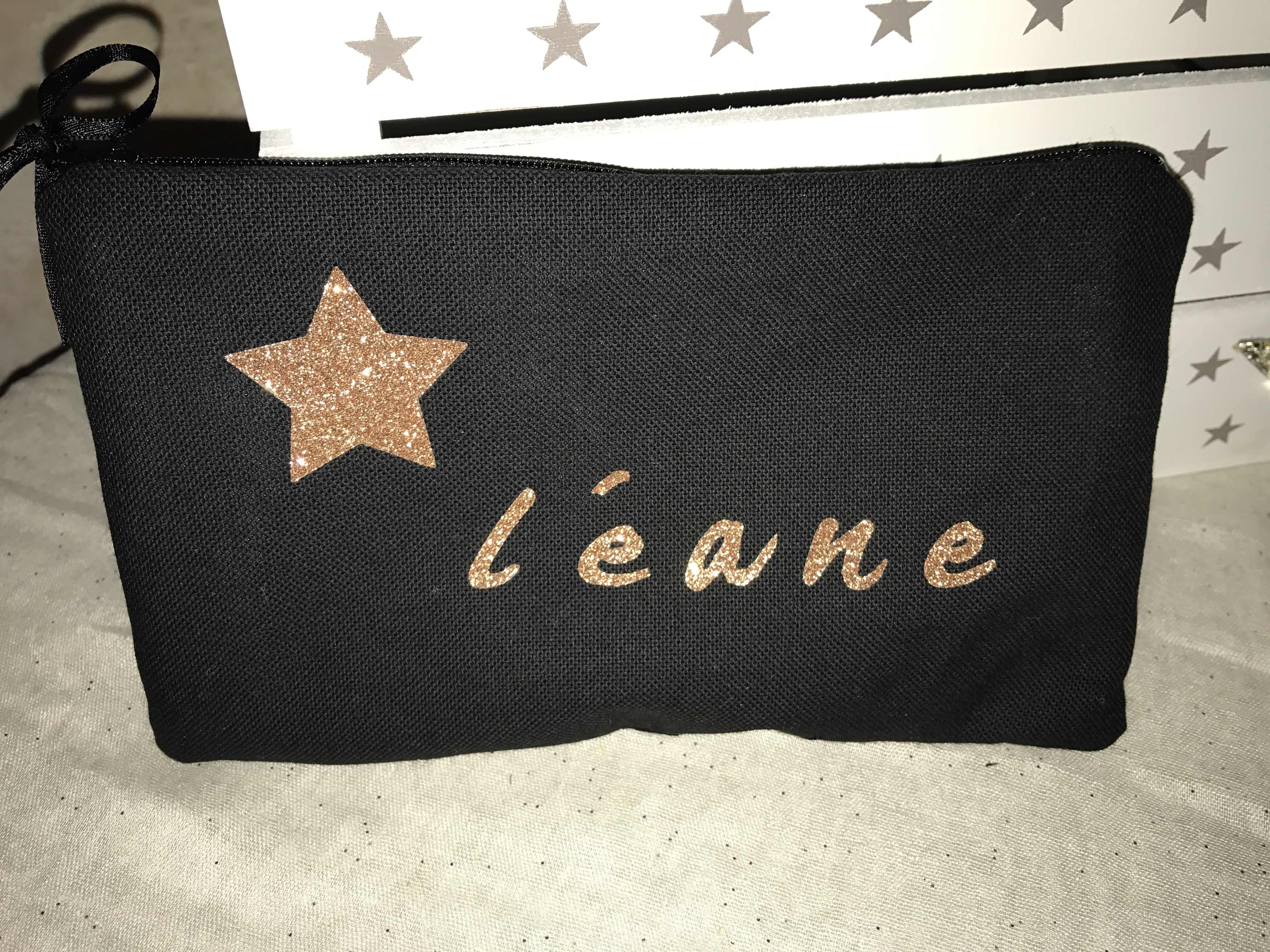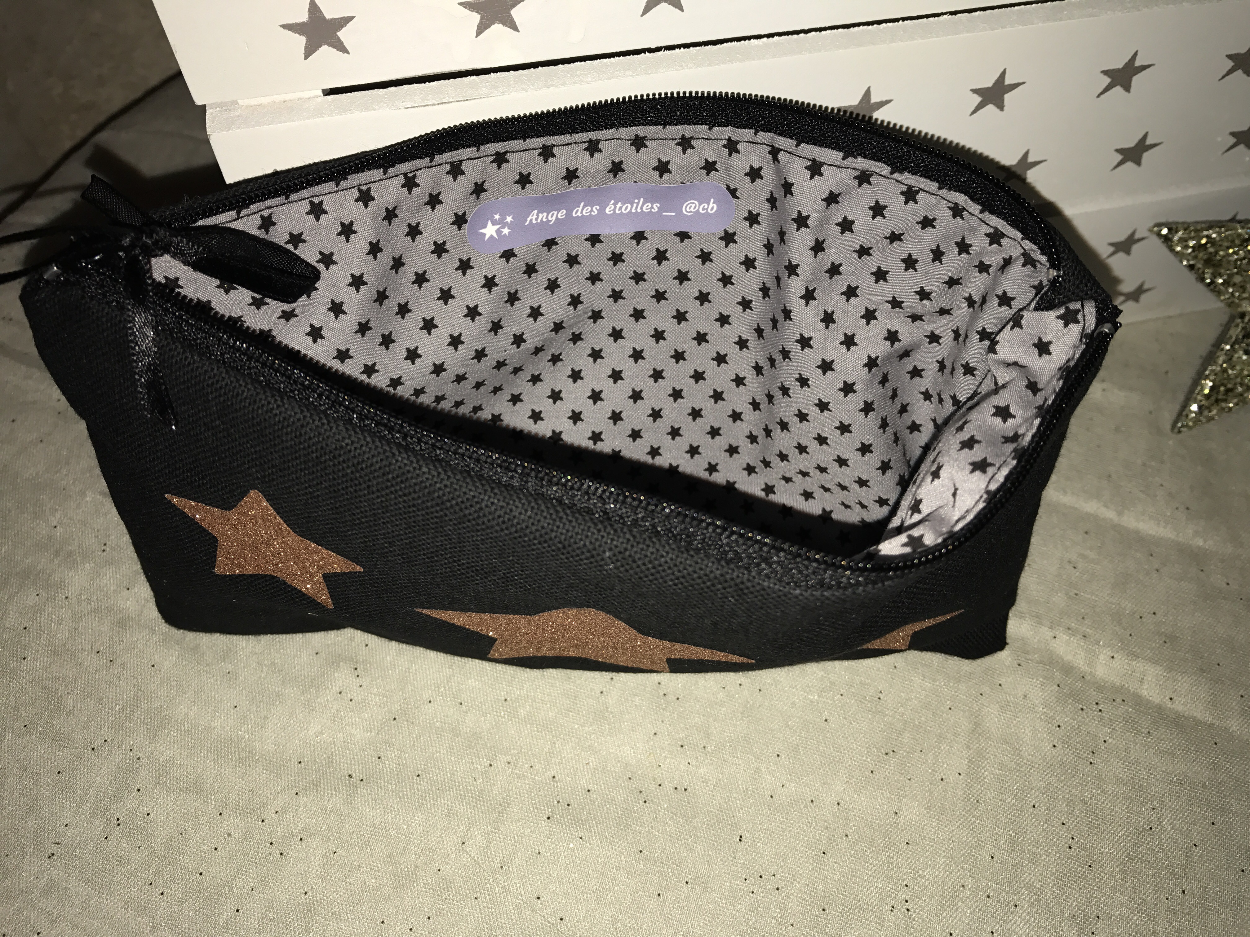 Cadeau trousses personnalisées, Créations personnalisées, TroussesTrousse noire personnalisée étoiles et prénom – intérieur tissu coton gris avec des étoiles #ange_des_etoiles 3 janvier 2017 angedesetoiles_@cb