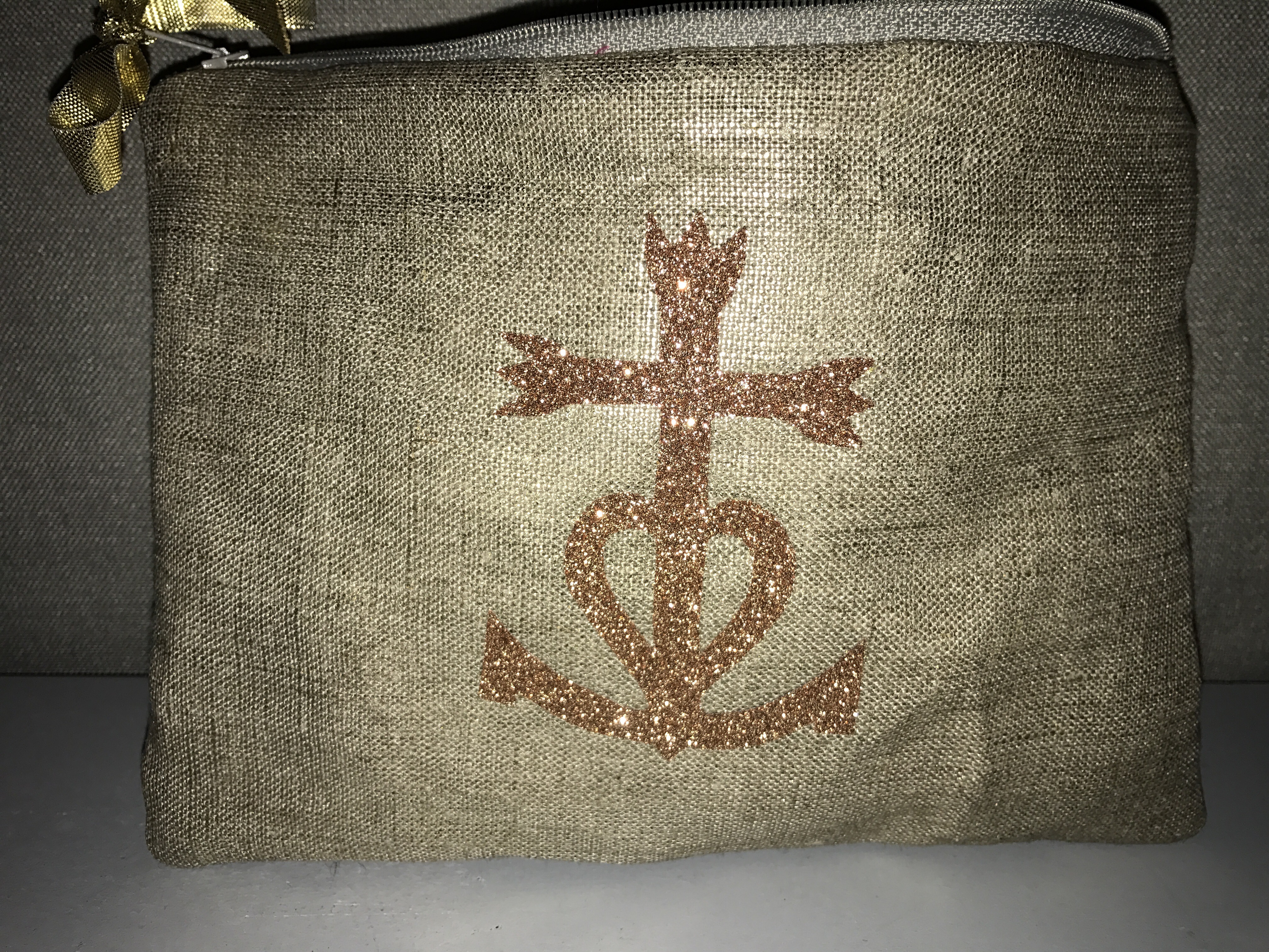 TroussesTrousse en lin métallisé et croix de Camargue paillette intérieur coton impression graphique dorée ange des étoiles 7 janvier 2017 angedesetoiles_@cb