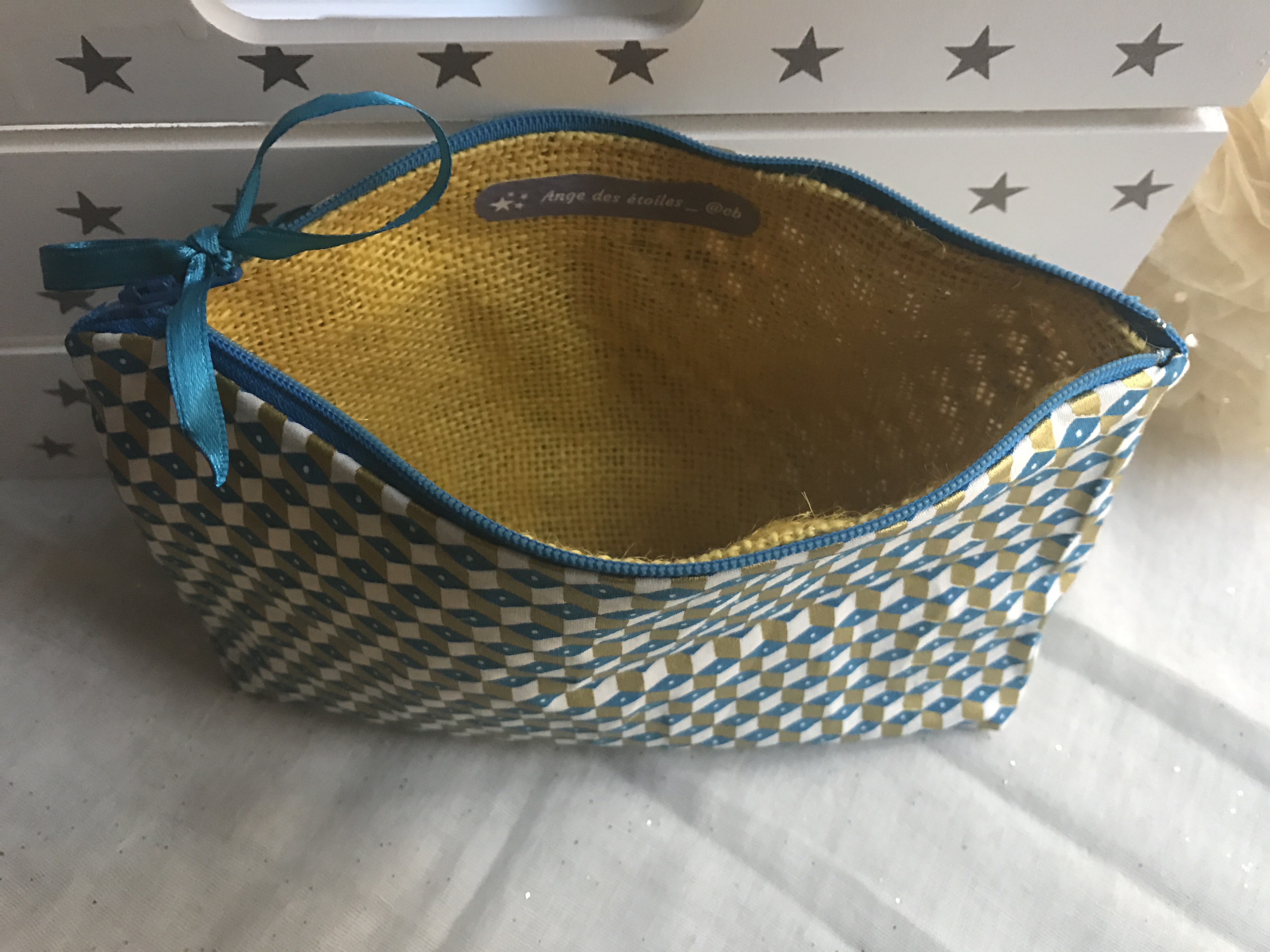 TroussesTrousse tissu graphique moutarde et bleu : 12€ #ange_des_etoiles 1 janvier 2017 angedesetoiles_@cb