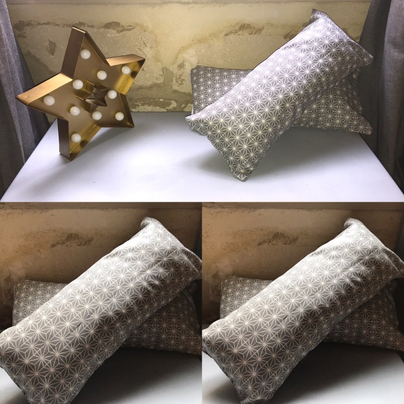 CoussinsCoussins bi matière lin coton pois dorés ange des étoiles : 20€ l’unité 13 avril 2017 angedesetoiles_@cb