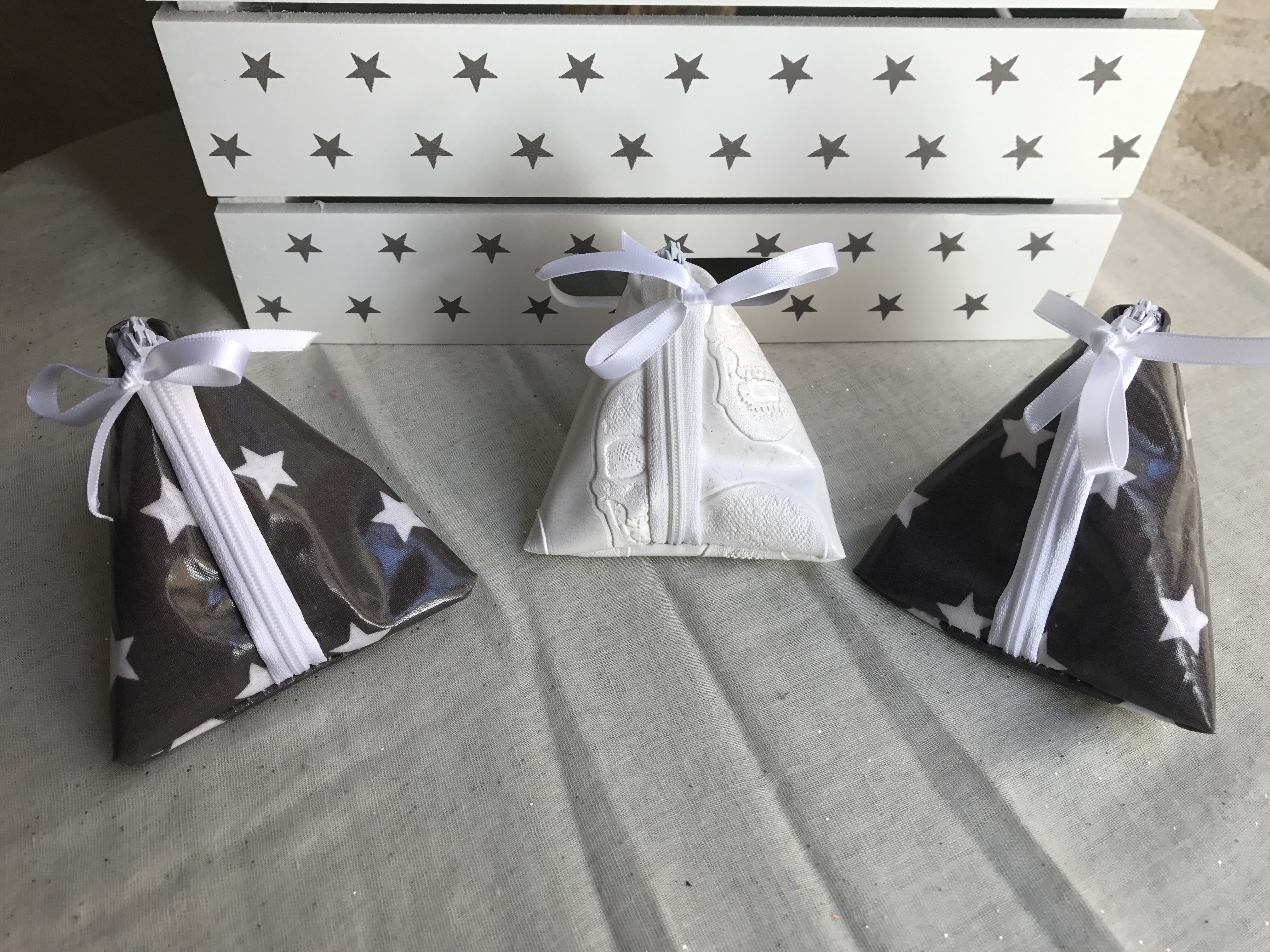 Berlingots, Porte-monnaieBerlingots motif tête de mort blanc et marron avec les étoiles blanches tissu enduit ange des étoiles : 5€ l’unité 9 avril 2017 angedesetoiles_@cb