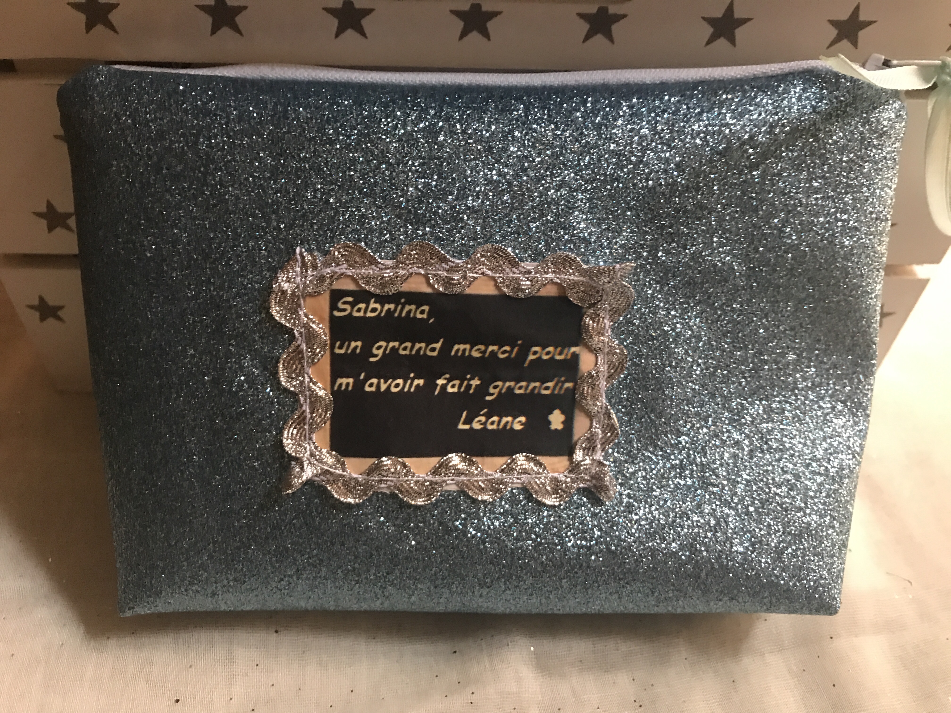 Cadeau trousses personnalisées, Créations personnalisées, TroussesTrousses personnalisées pour une maîtresse ou atsem tissu paillettes dorées ou bleues 27 juin 2017 angedesetoiles_@cb