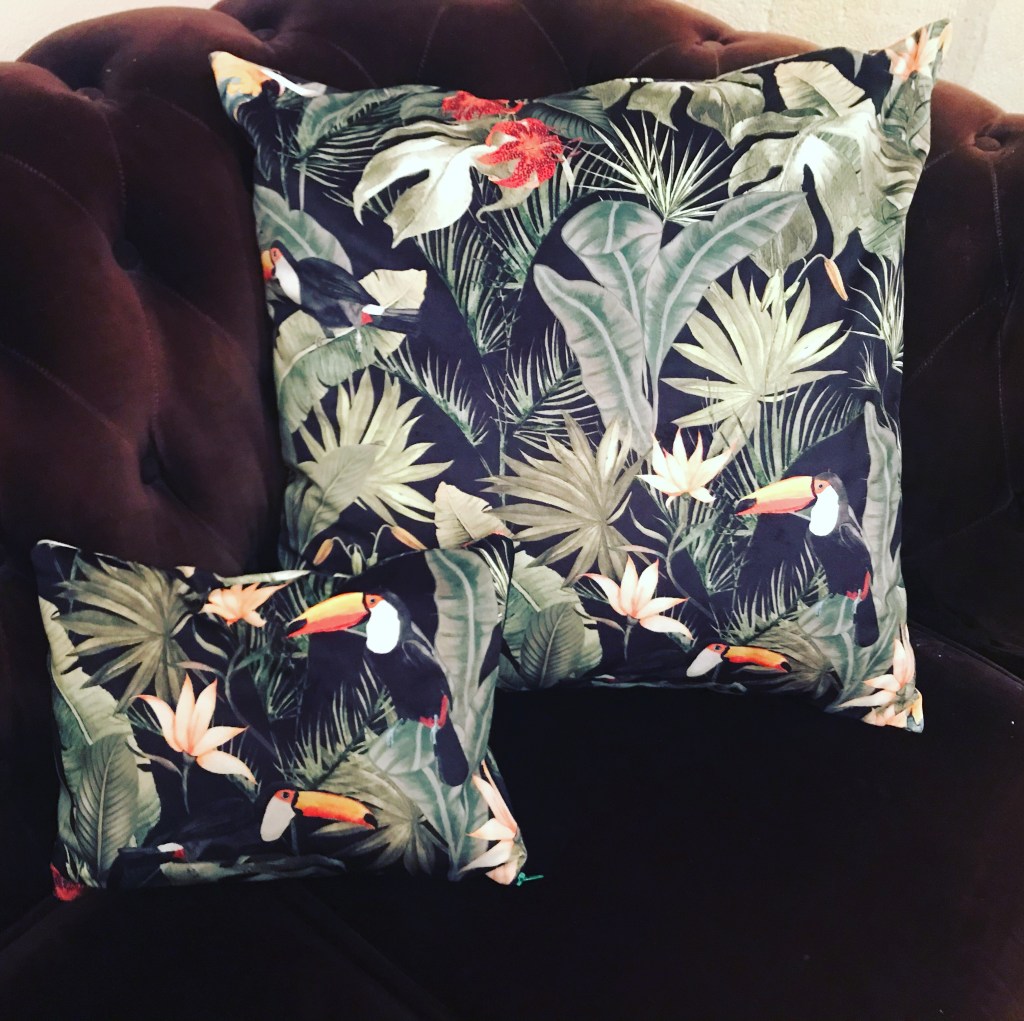 Coussin en velours motif jungle