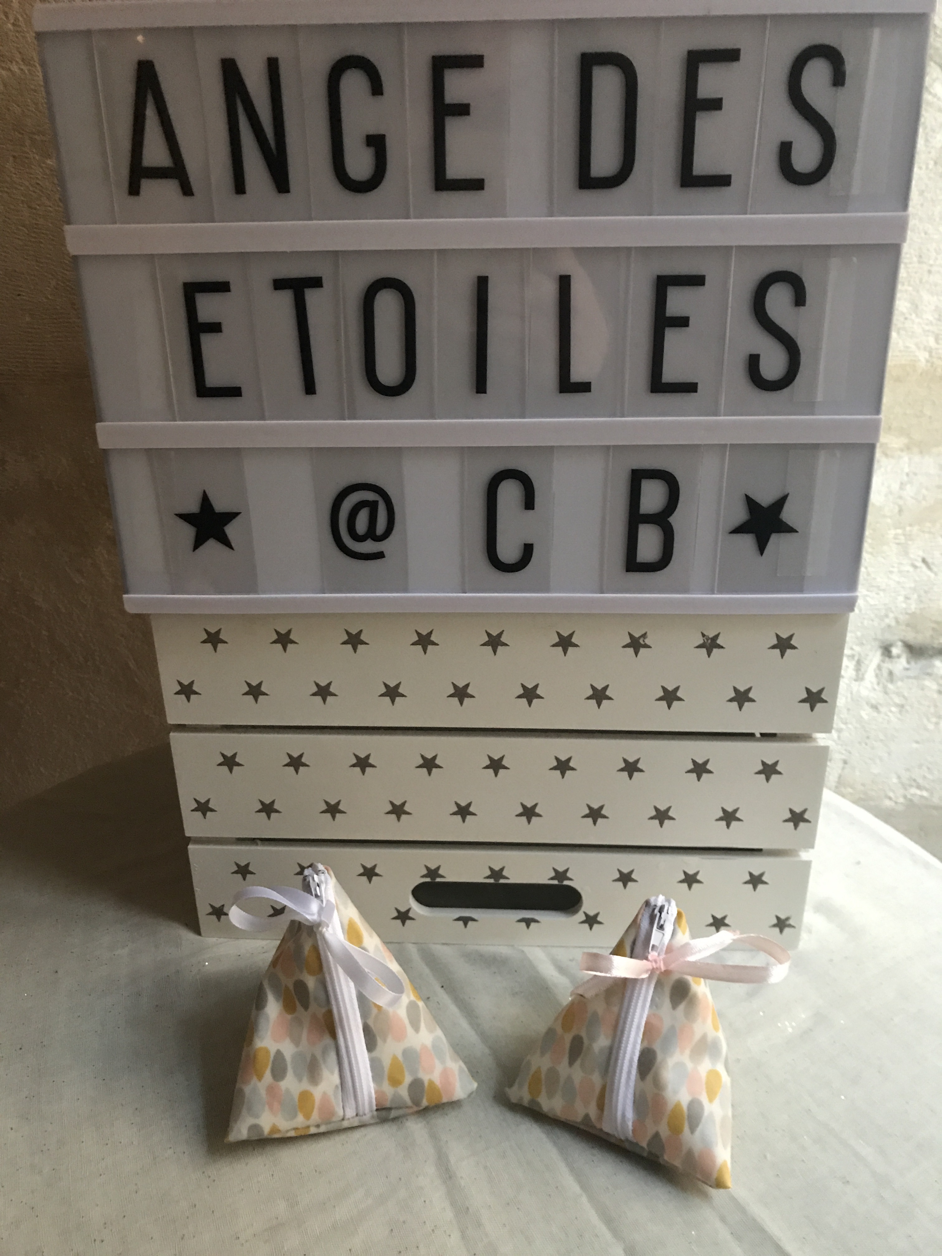 Berlingots paillettes bleutées, porte monnaie. Ange des étoiles : 5€ l’unité