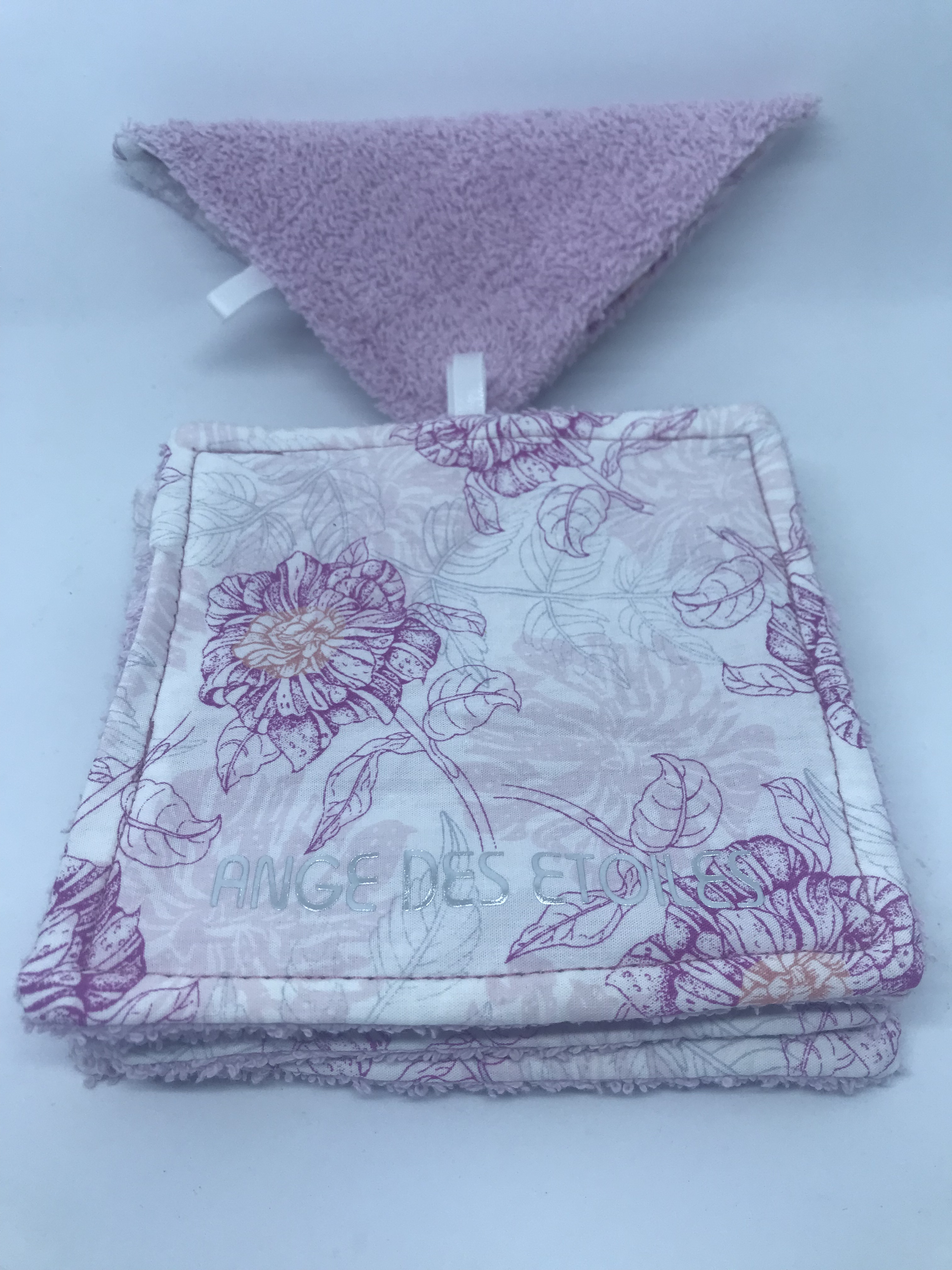 7 carrés éponges bio rose, tissu coton bio motif étoiles
