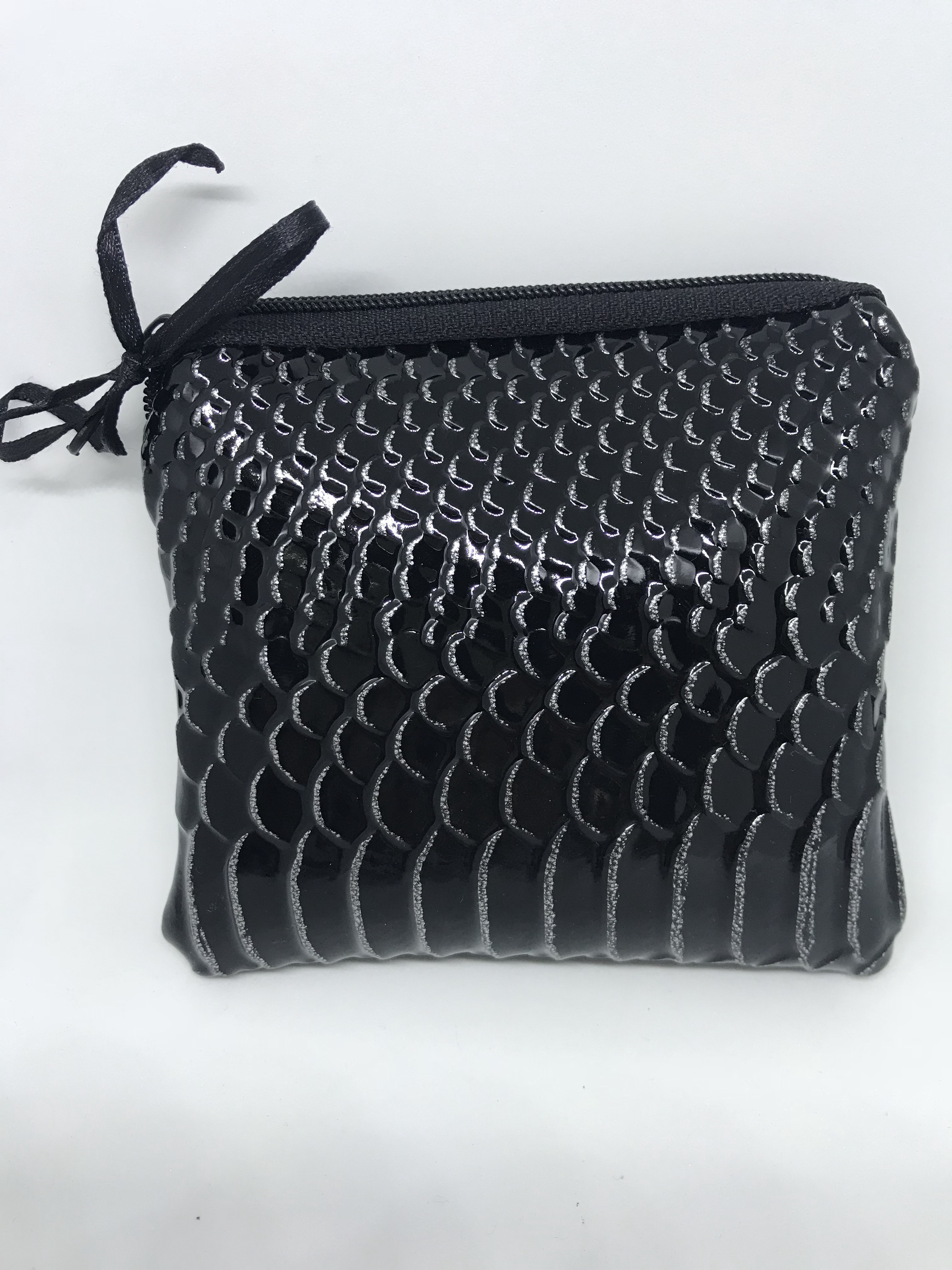 Porte monnaie tissu vernis croco noir. Ange des étoiles : 5€