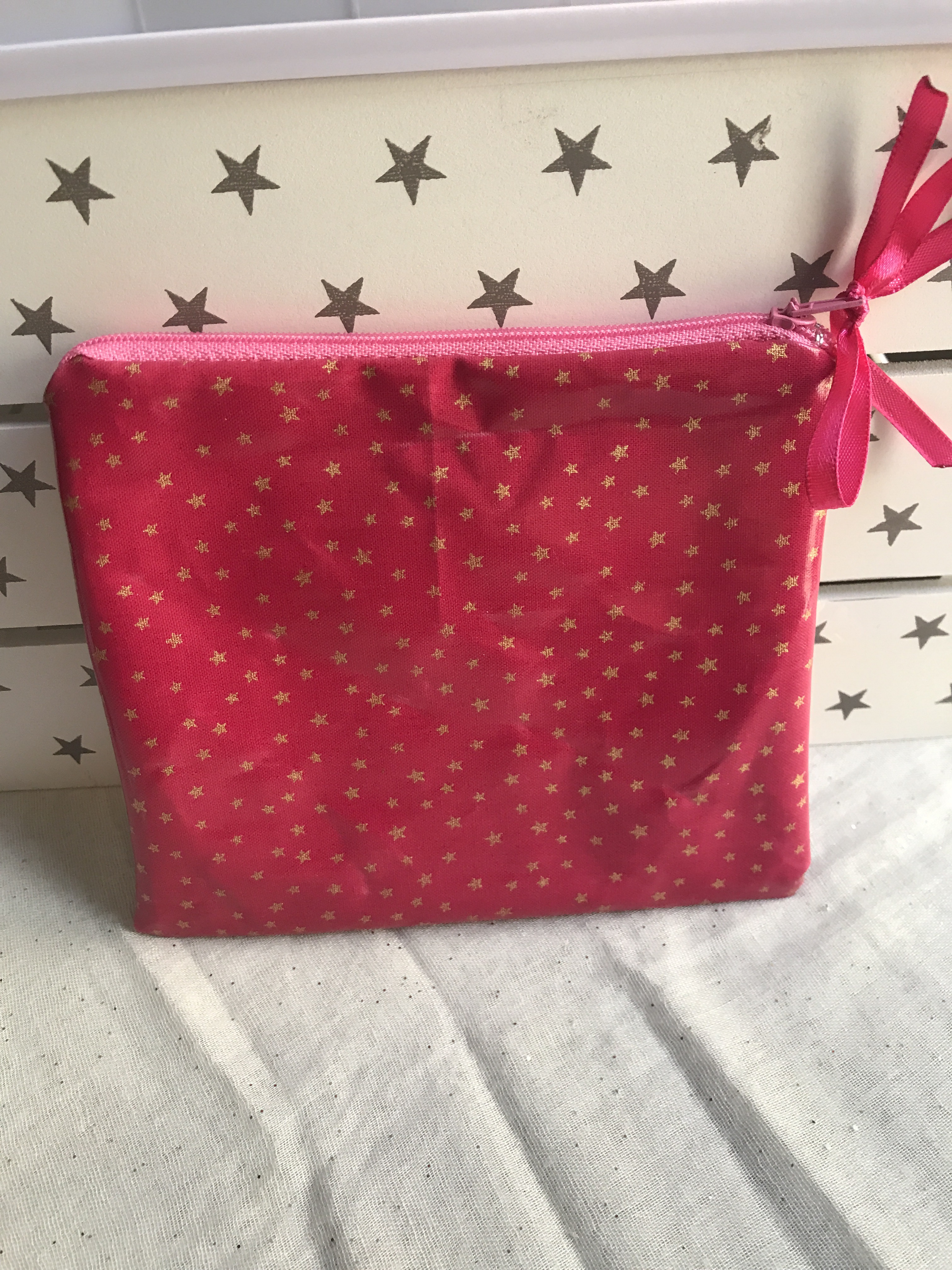 Cadeau trousses personnalisées, Créations personnalisées, TroussesTrousse personnalisée tissu enduit rose et étoiles dorées ange des étoiles 30 Mai 2017 angedesetoiles_@cb