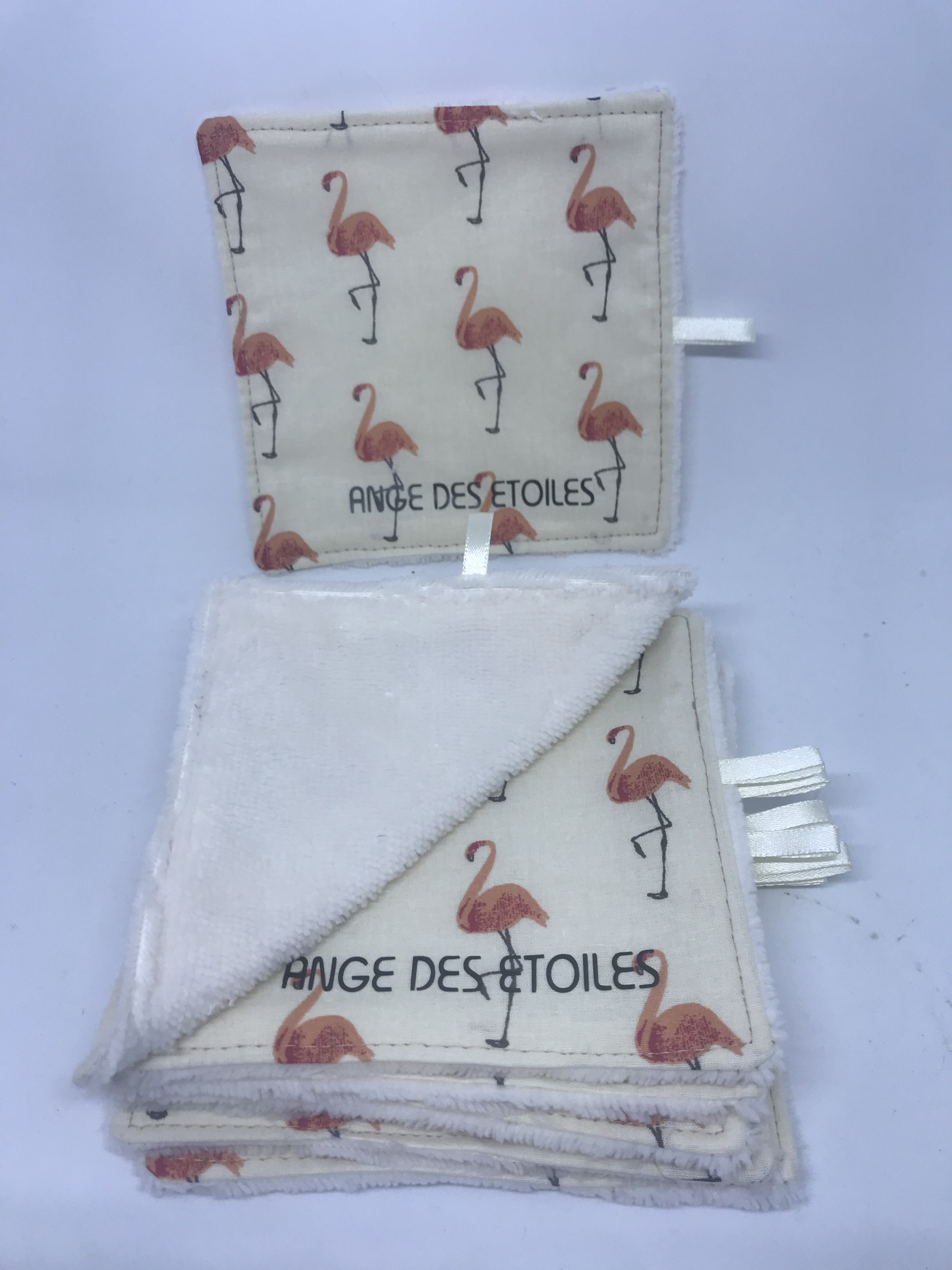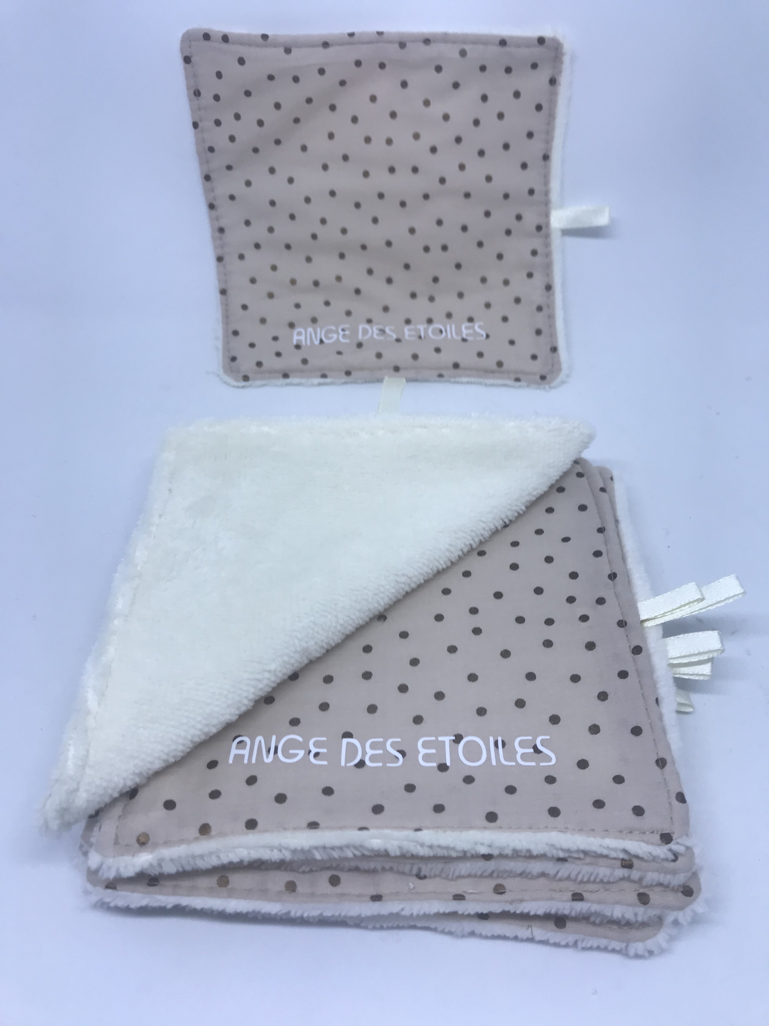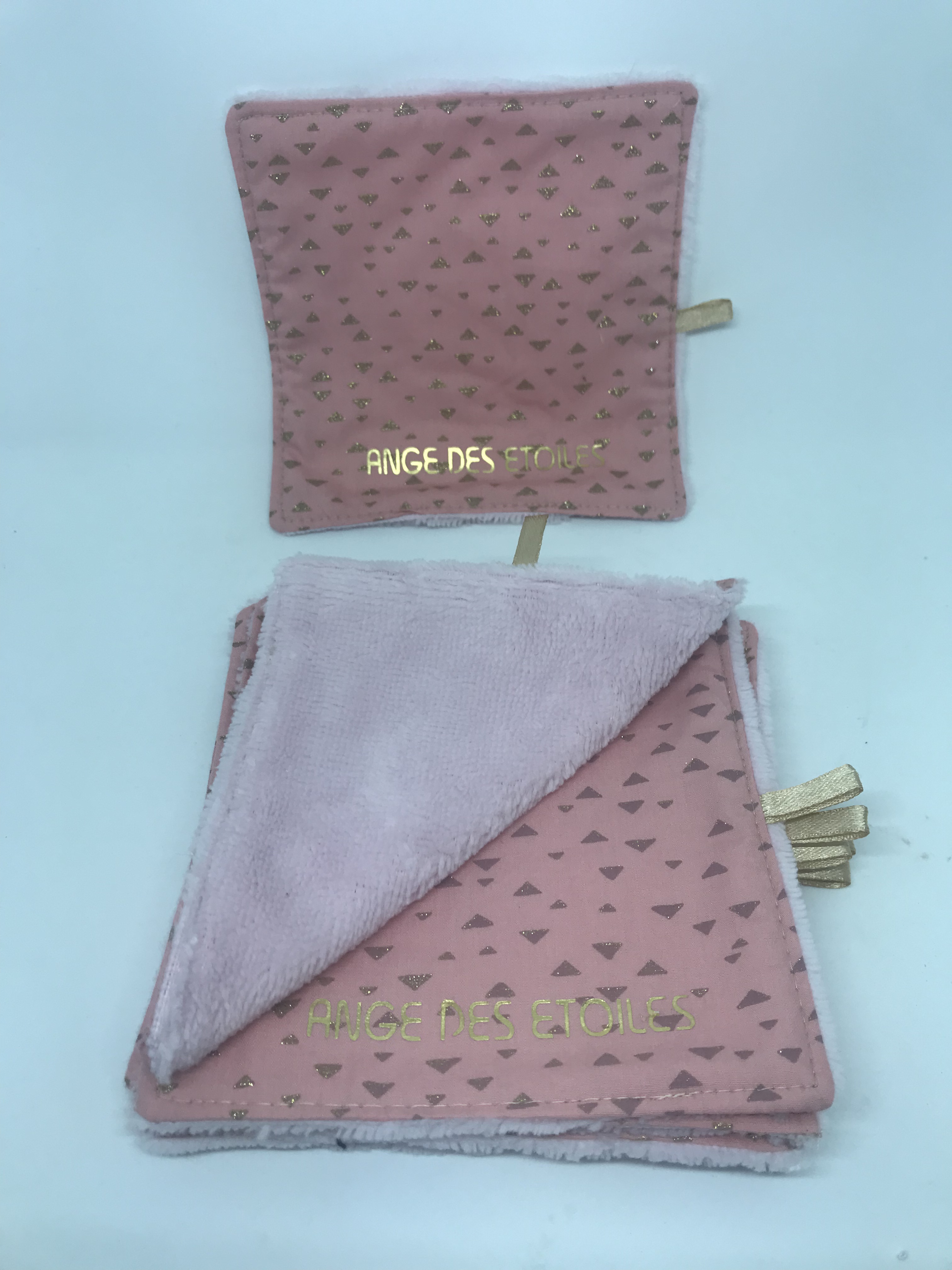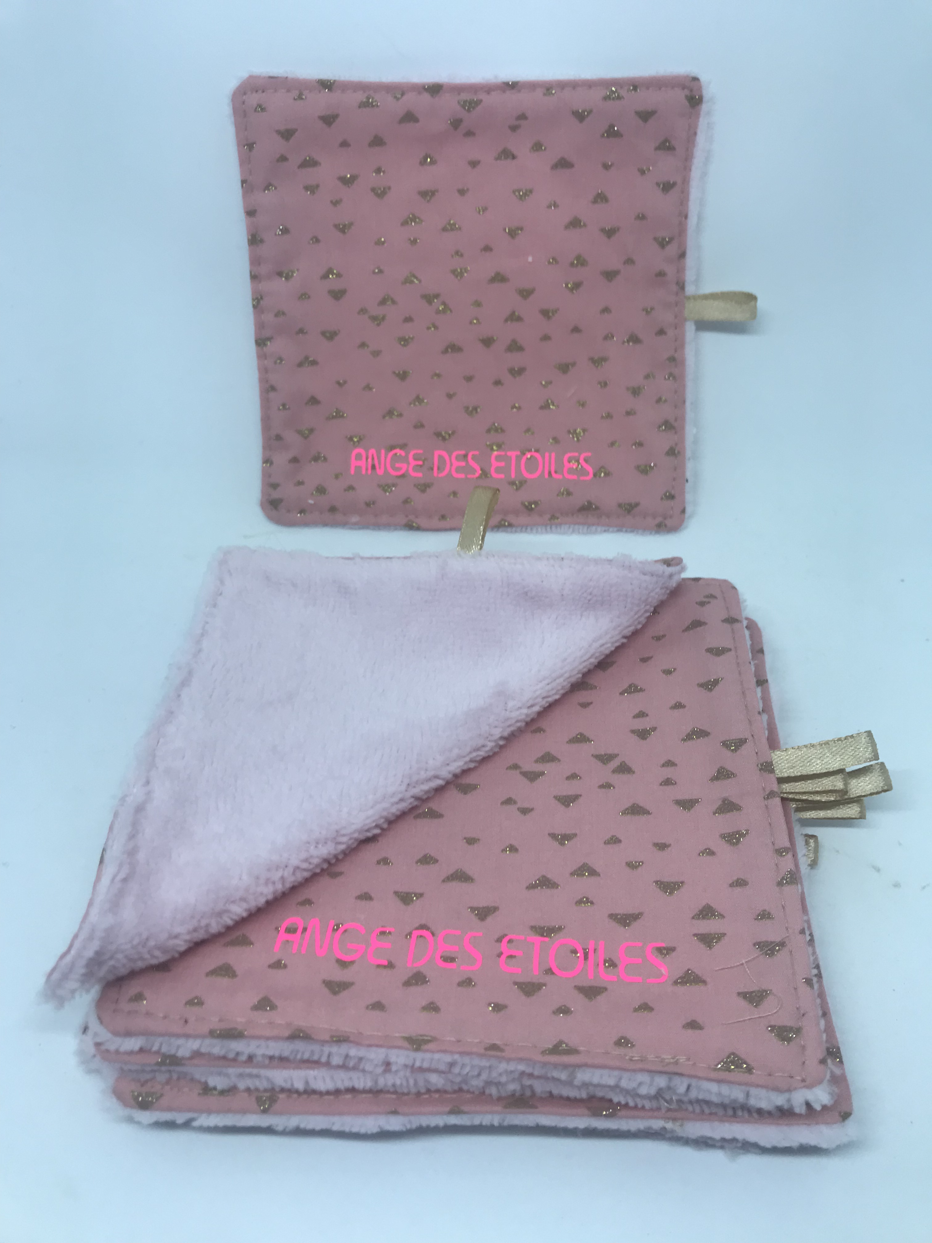 7 carrés éponges bio rose, tissu coton bio motif étoiles