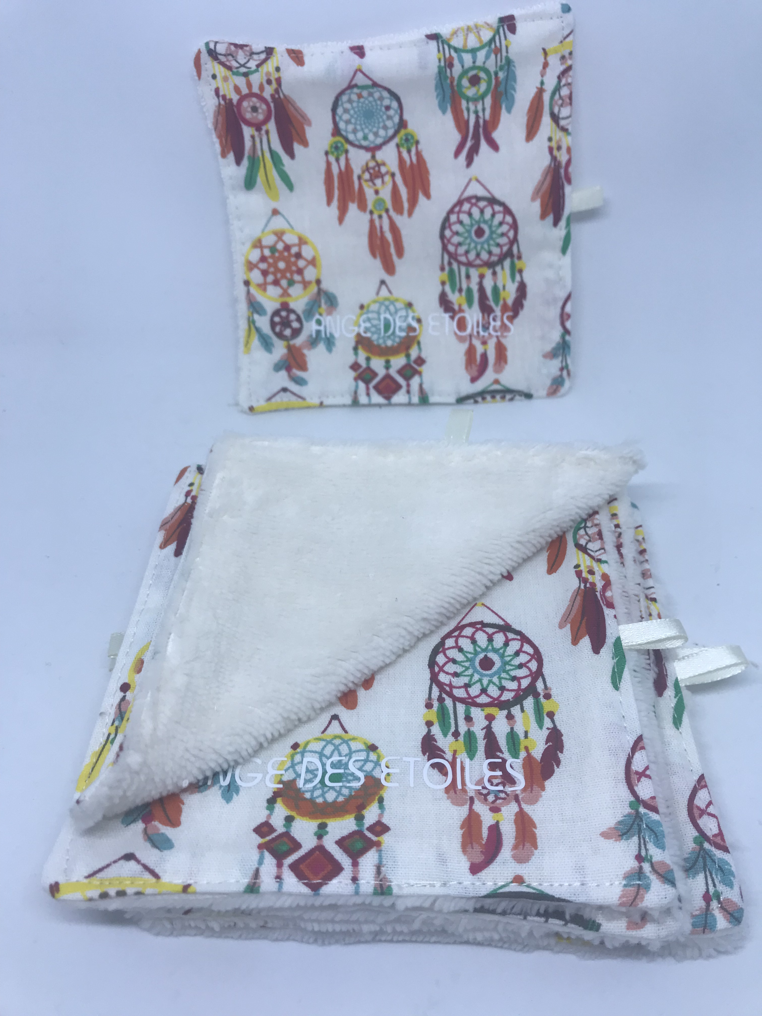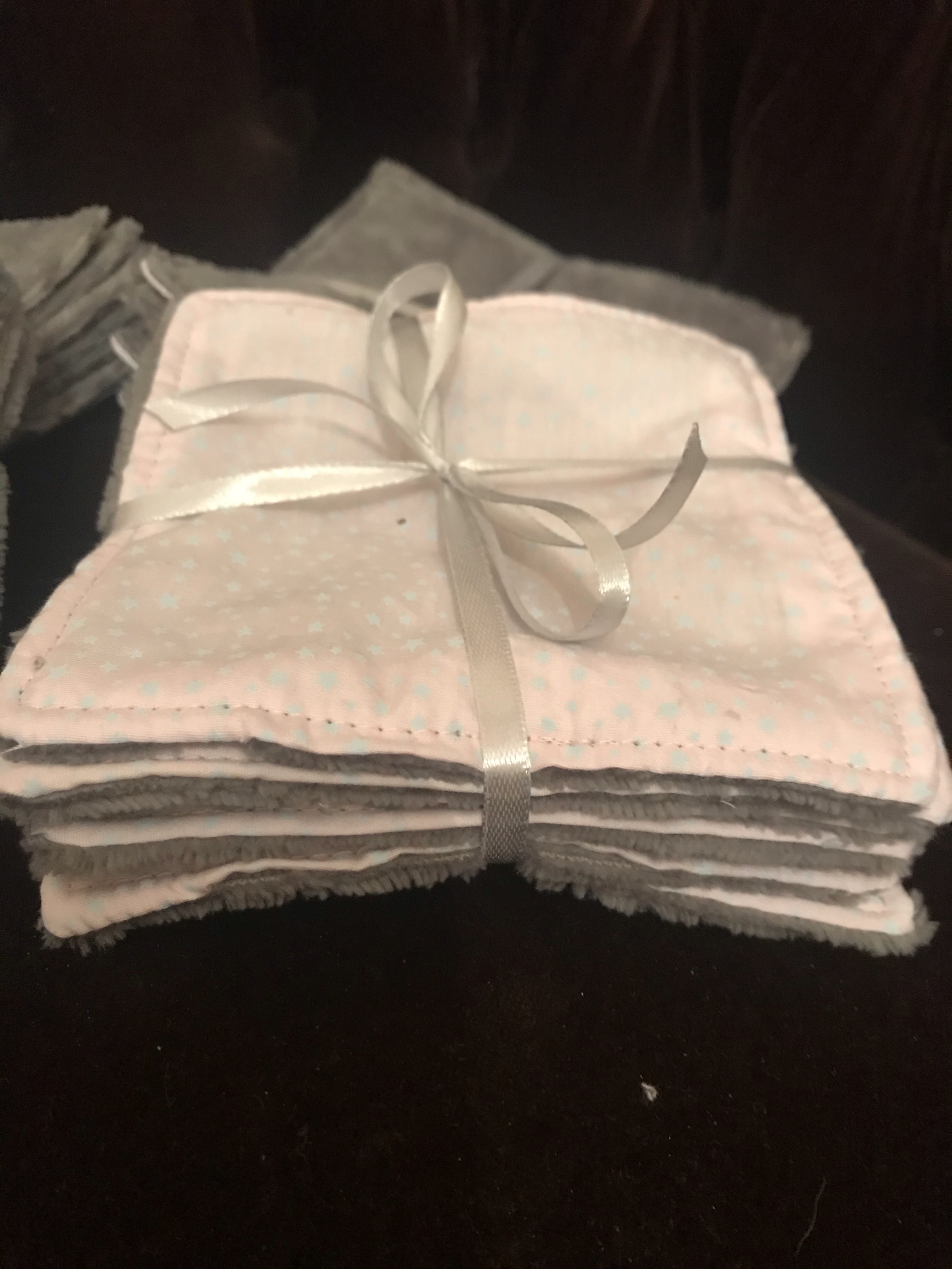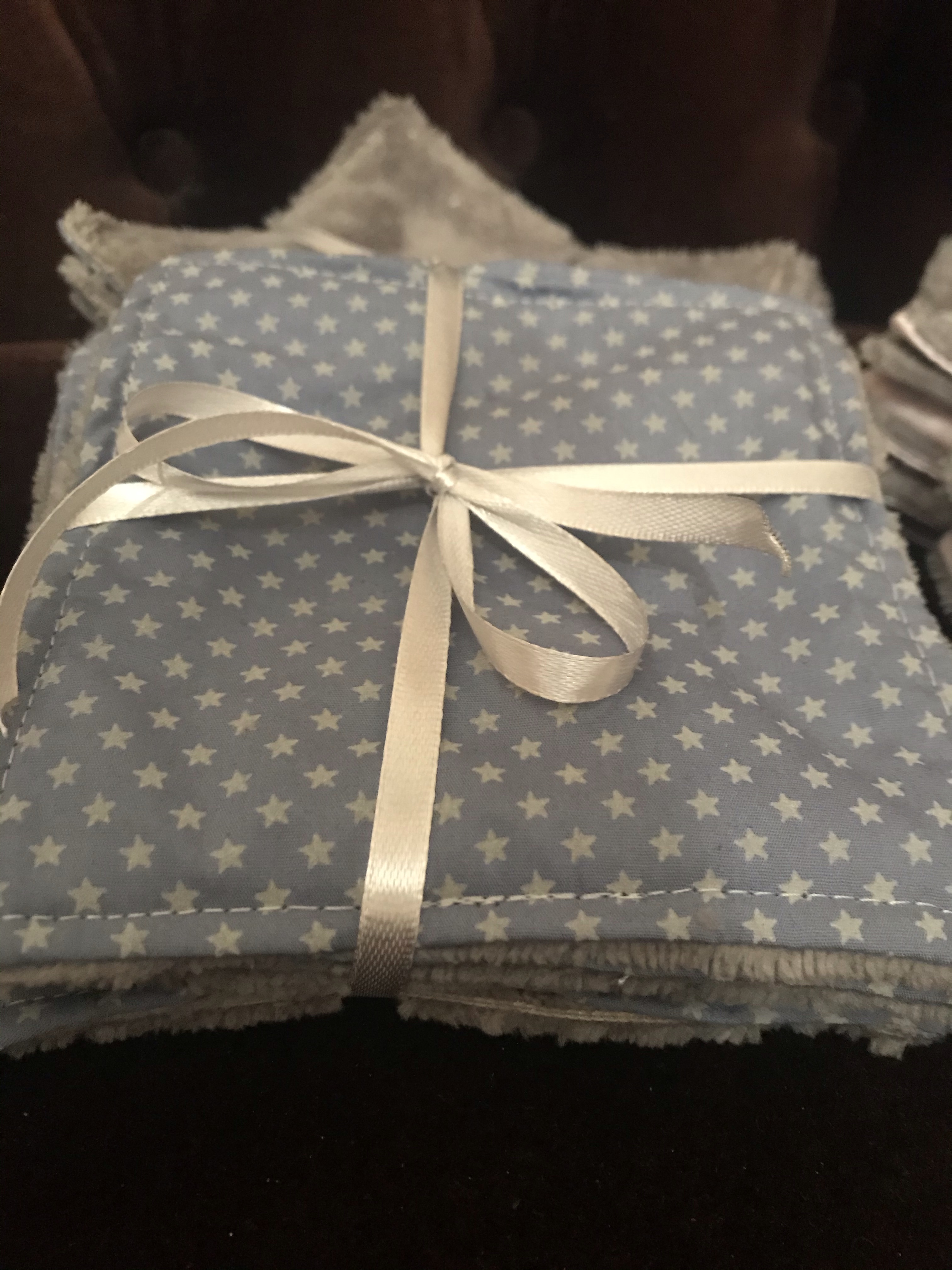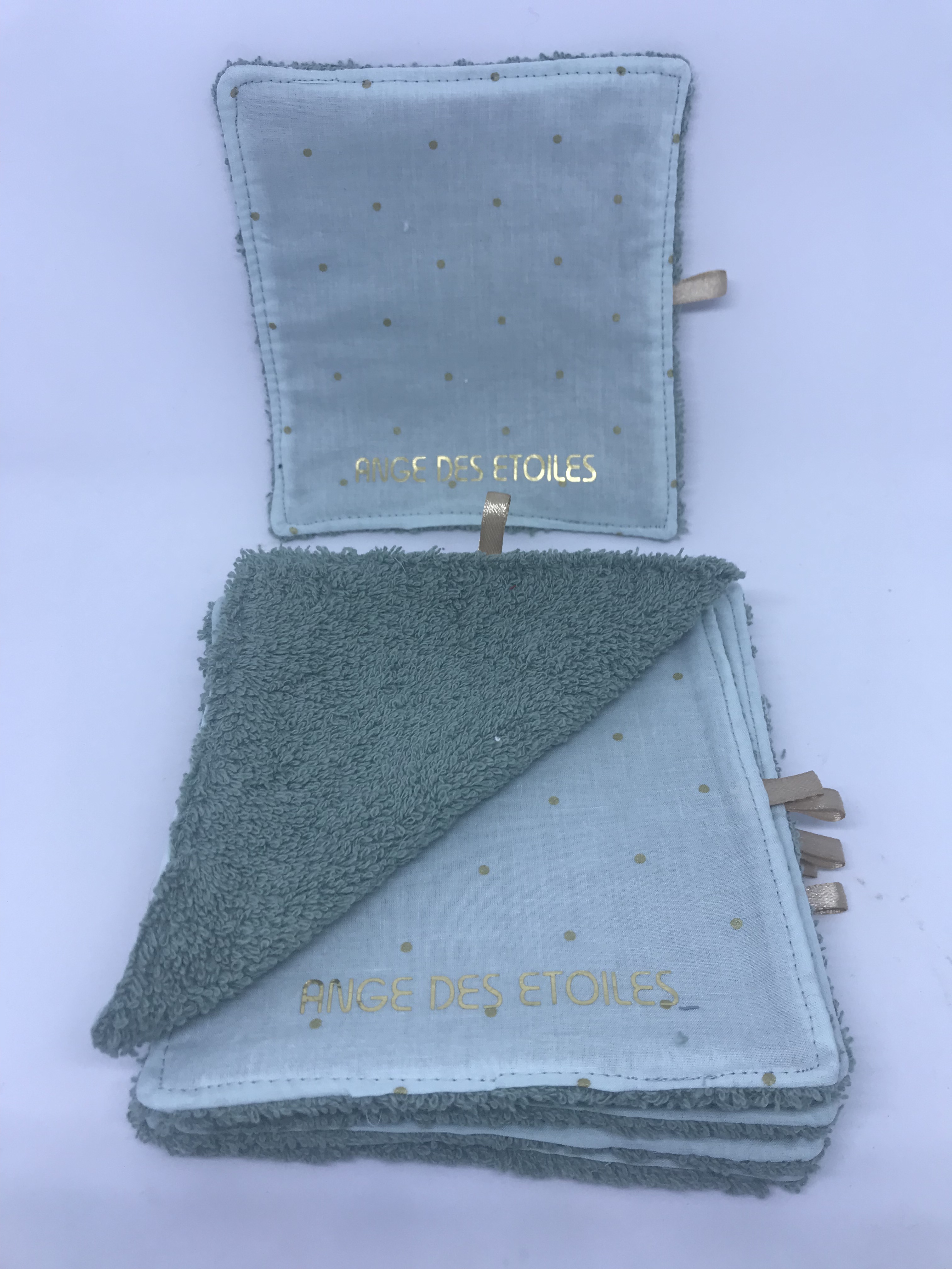 7 carrés éponges bio rose, tissu coton bio motif étoiles