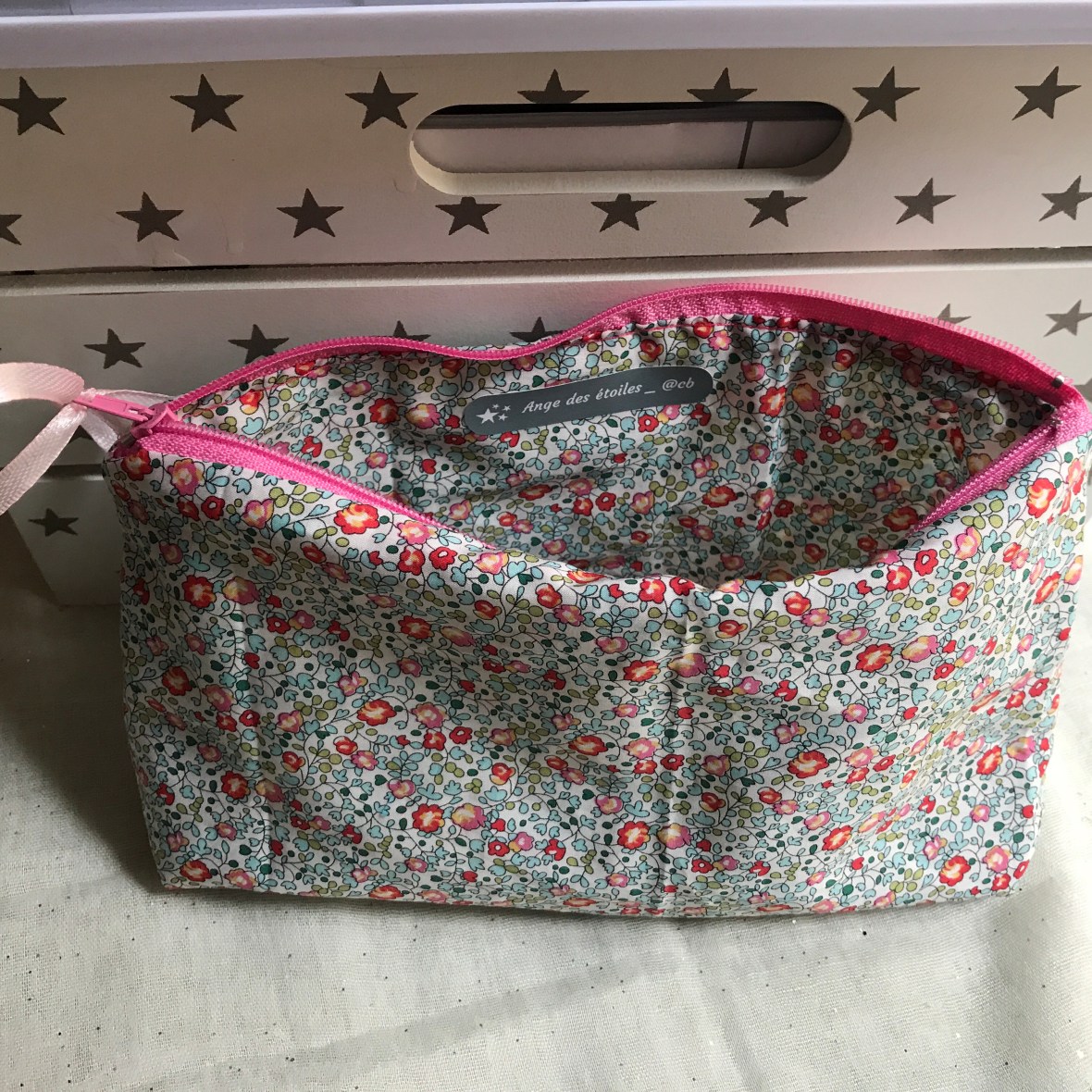 Trousse personnalisée tissu enduit rose et étoiles dorées ange des étoiles