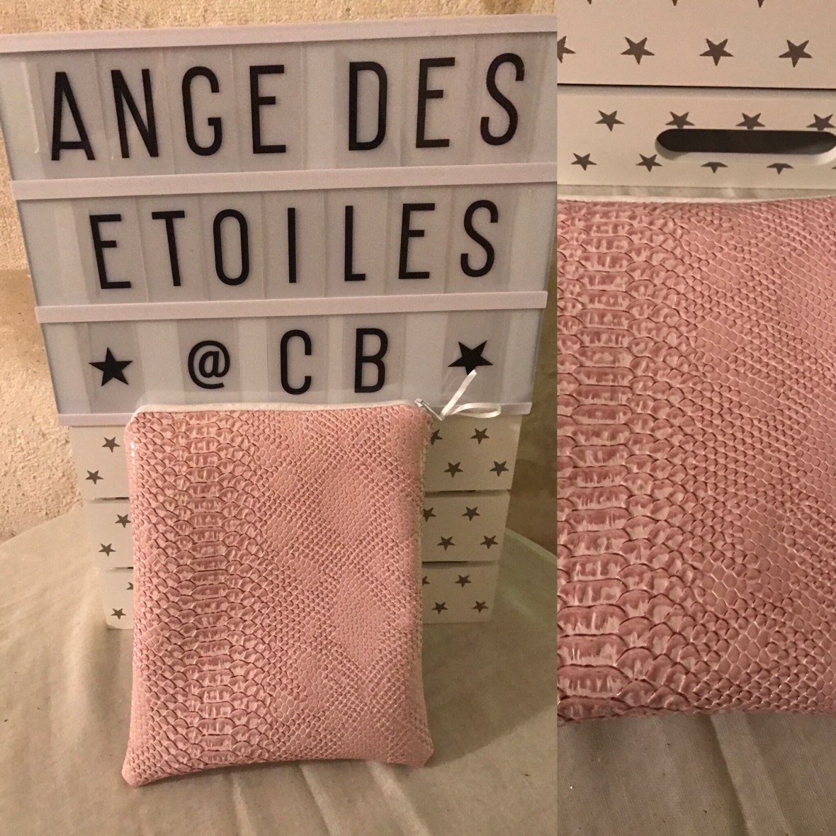 Pochette trousse plate simili cuir crocro rose ange des étoiles : 12€