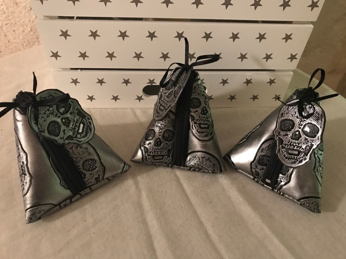 Berlingot porte monnaie simili cuir tissu tête de mort ange des étoiles : 5€