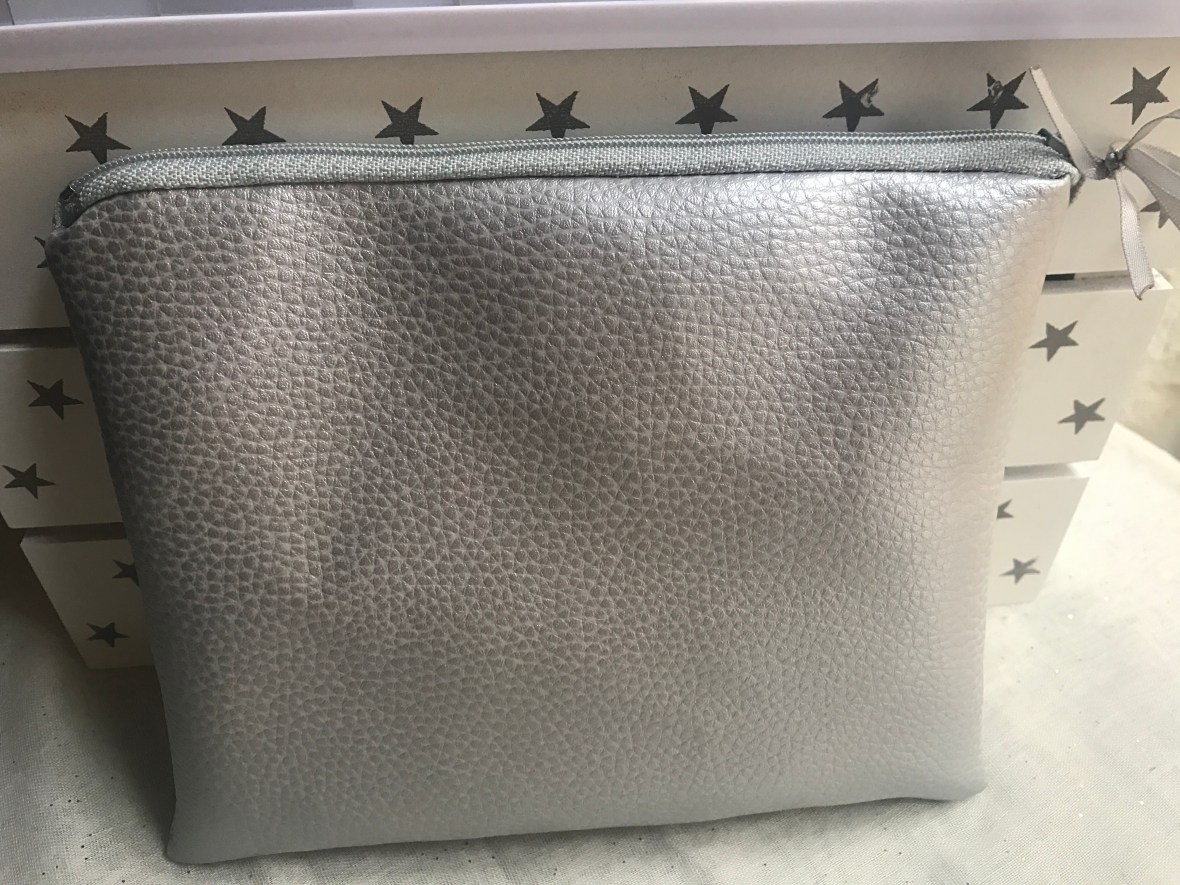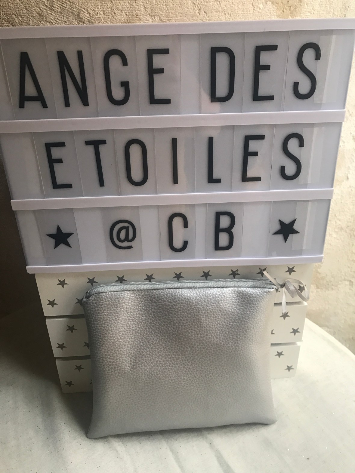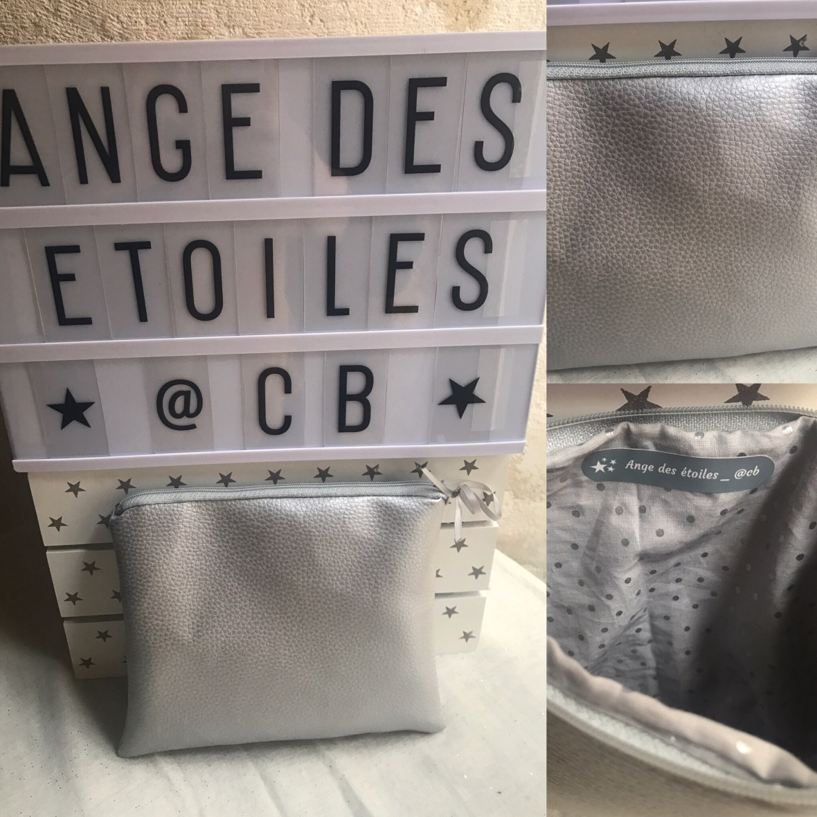 Trousse plate simili cuir grise ange des étoiles : 10€