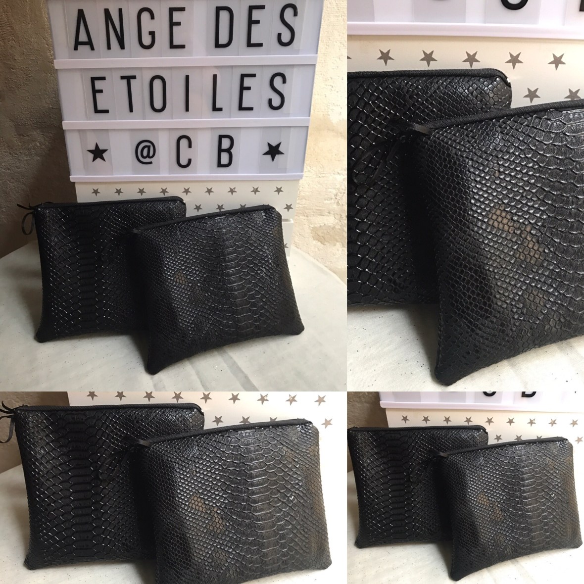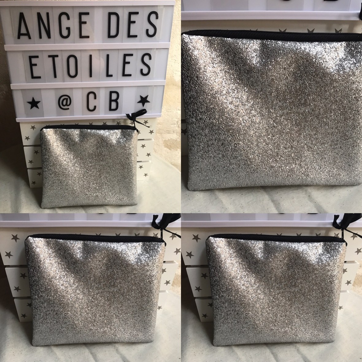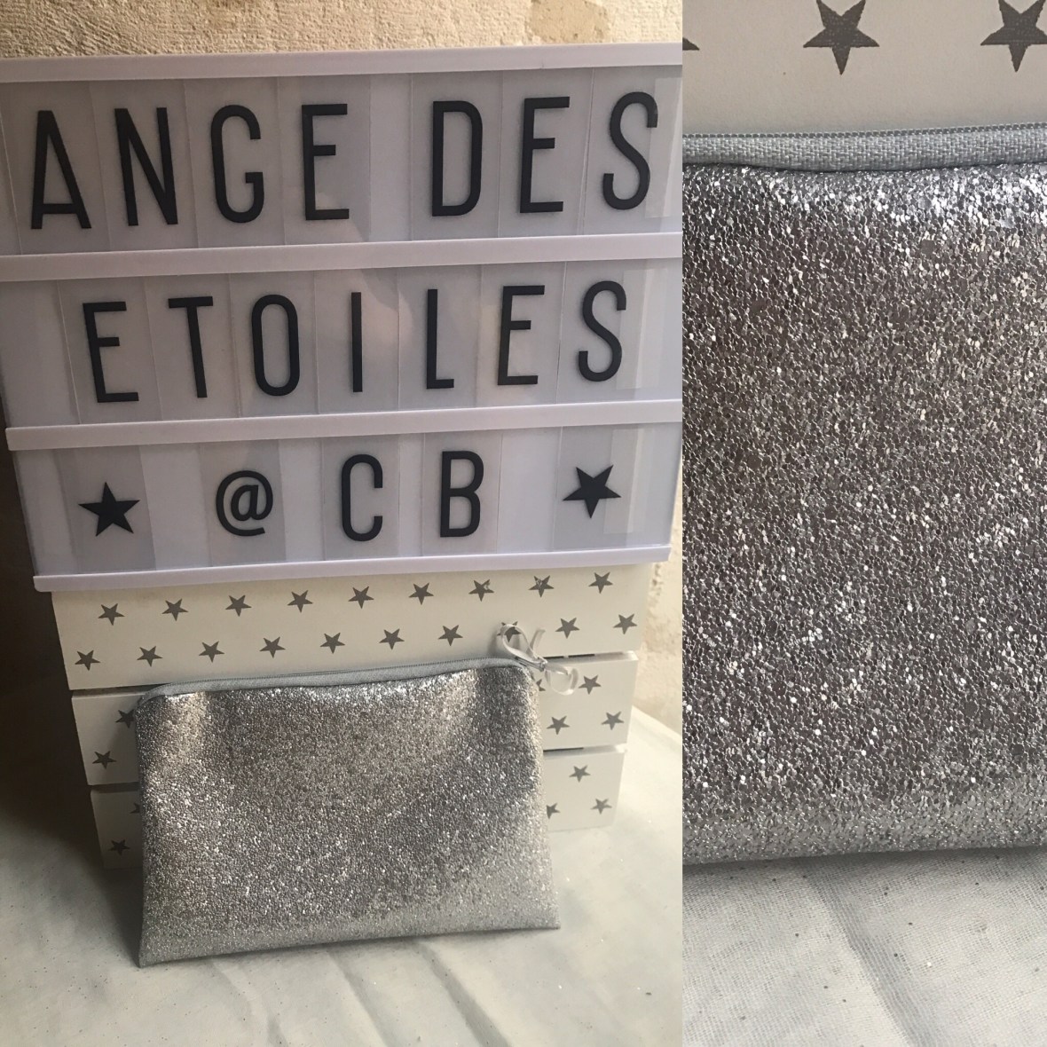 Trousse plate simili cuir grise ange des étoiles : 10€