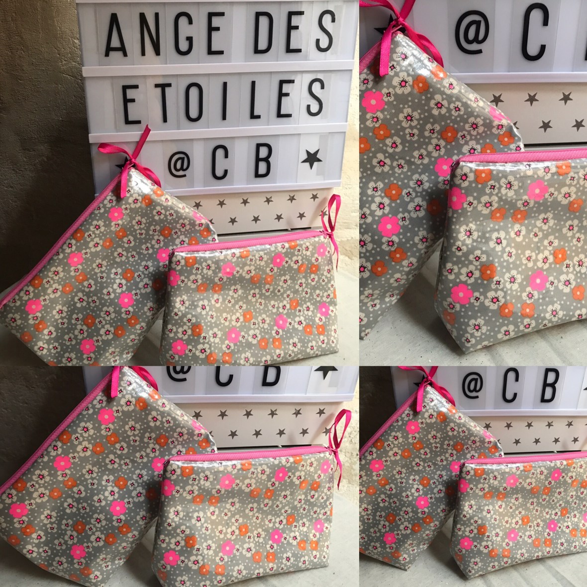 Trousse plate grise en simili cuir et tissu intérieur papa pique et Maman coud. Ange des étoiles : 12€