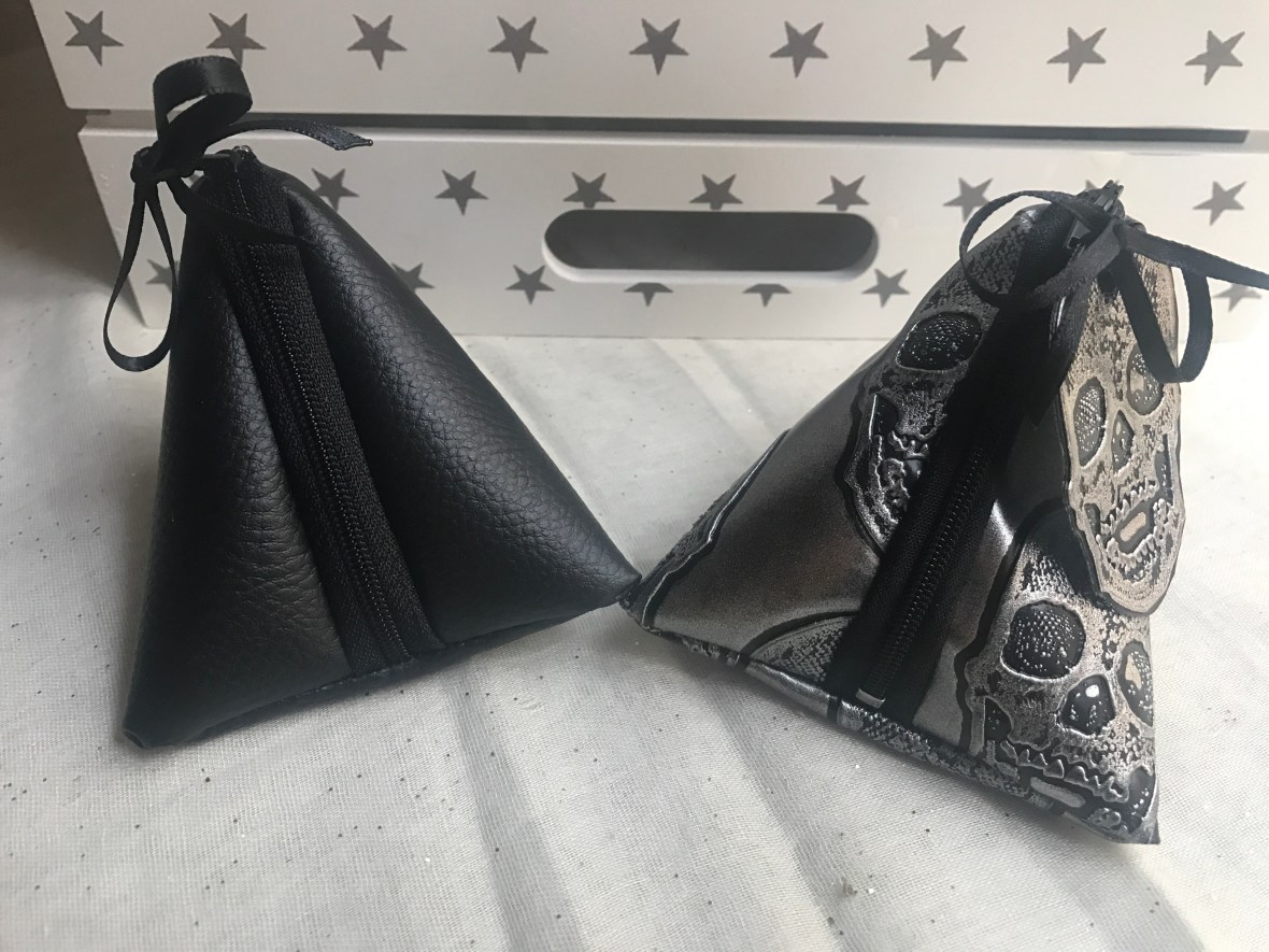 Berlingots tête de mort et noir simili cuir. Ange des étoiles : 5€