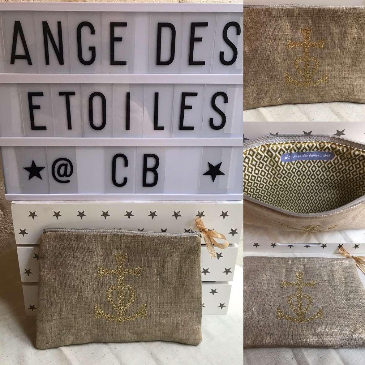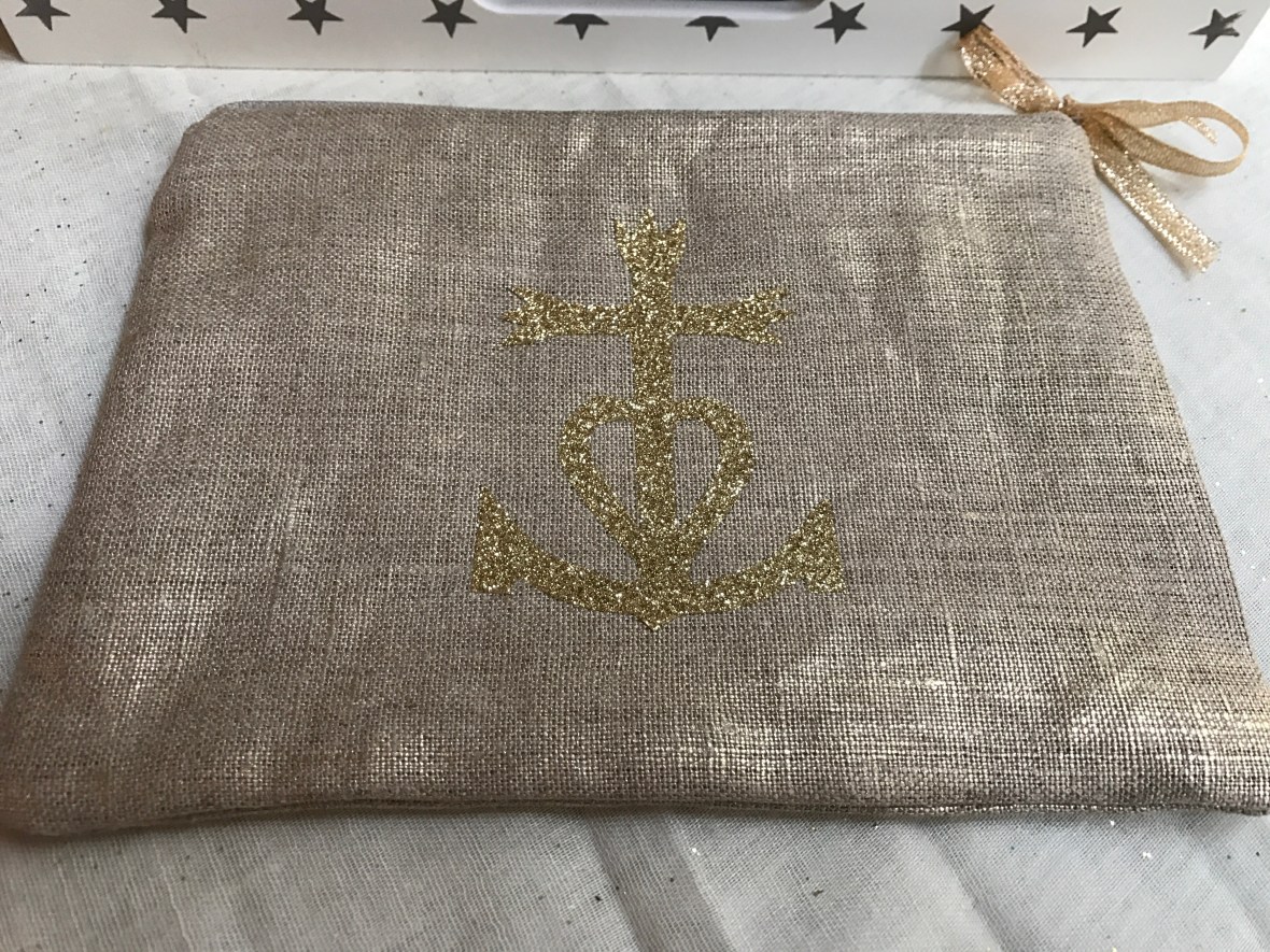 TroussesTrousse en lin doré motif en paillettes dorées croix de Camargue ange_des_etoiles 22 janvier 2017 angedesetoiles_@cb
