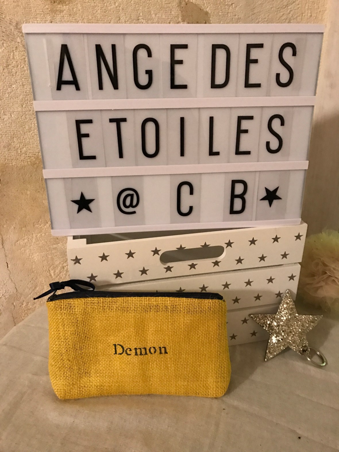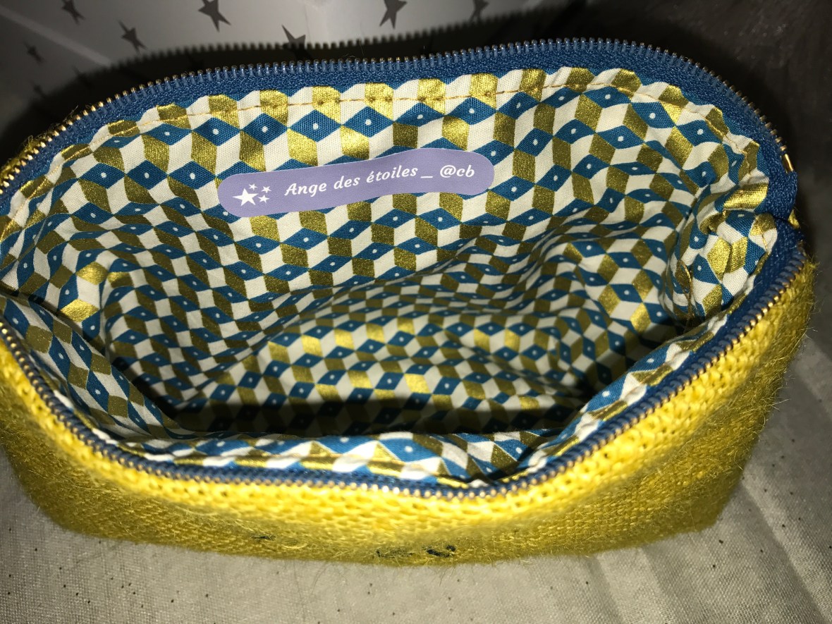 Cadeau trousses personnalisées, Créations personnalisées, TroussesTrousse tissu moutarde et intérieur tissu graphique avec inscription ange & demon ange_des_etoiles 3 janvier 2017 angedesetoiles_@cb