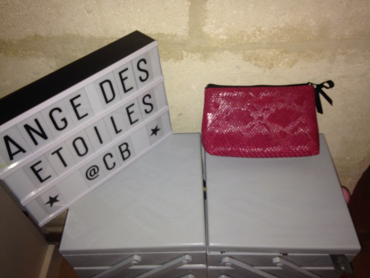 Trousse façon croco rose pâle tissu intérieur étoiles : 12€