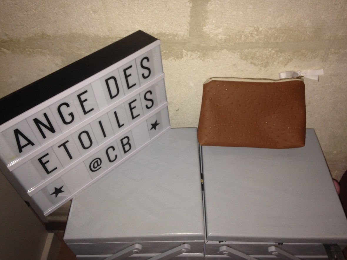 Trousse tissu enduit gris étoiles dorées intérieur coton : 12€