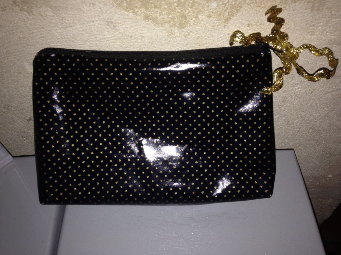Trousse tissu enduit bleu marine et étoiles dorées intérieur coton : 12€