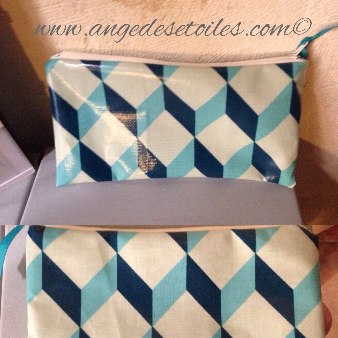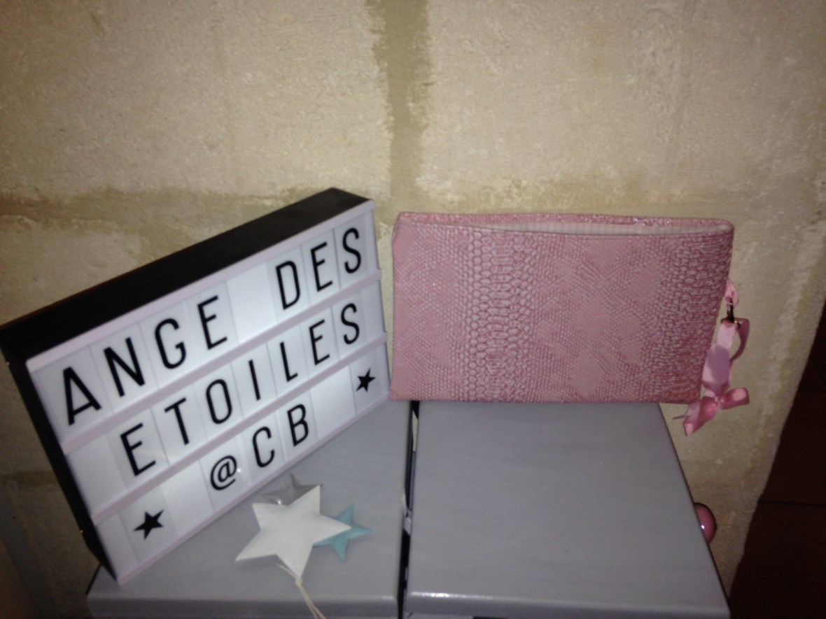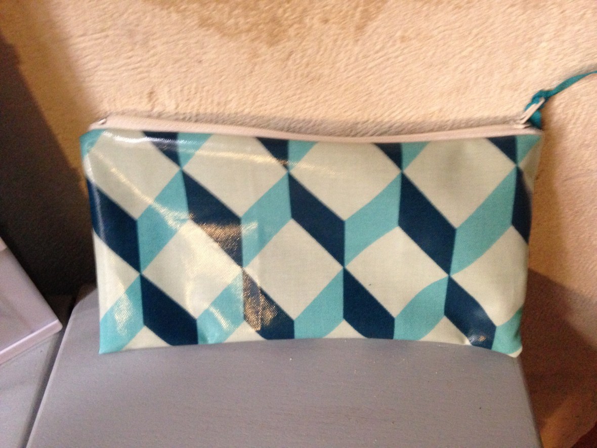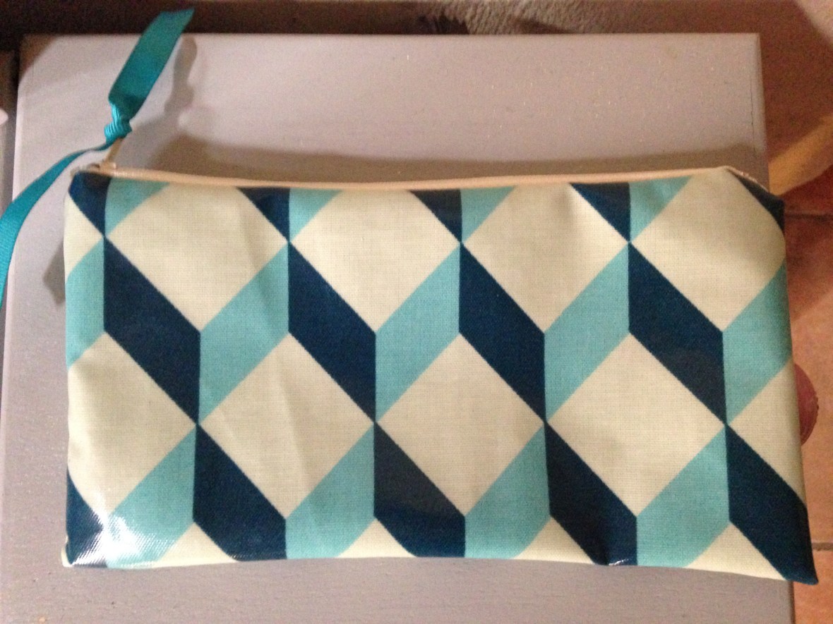 Trousse en simili cuir façon croco vert intérieur tissu Liberty : 12€