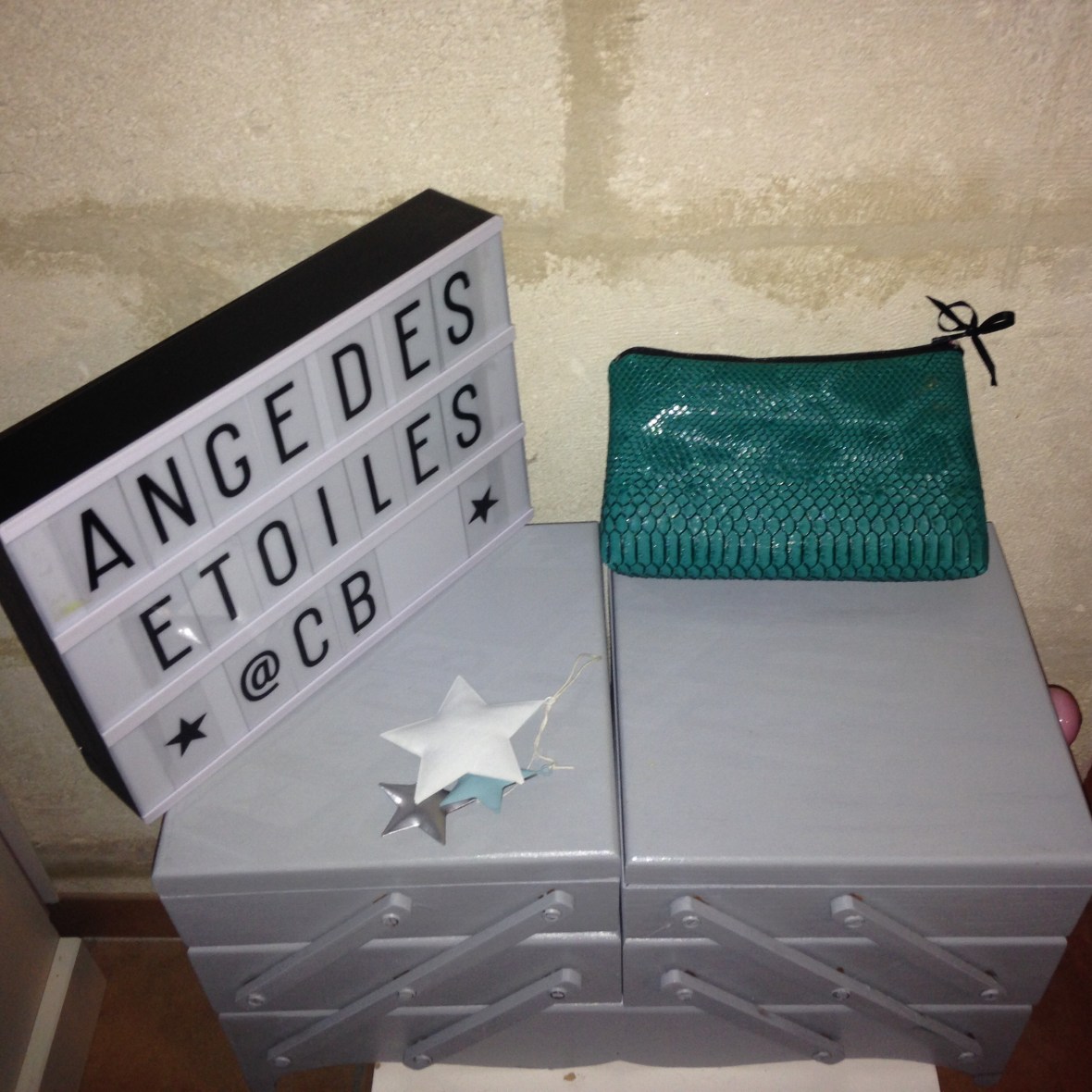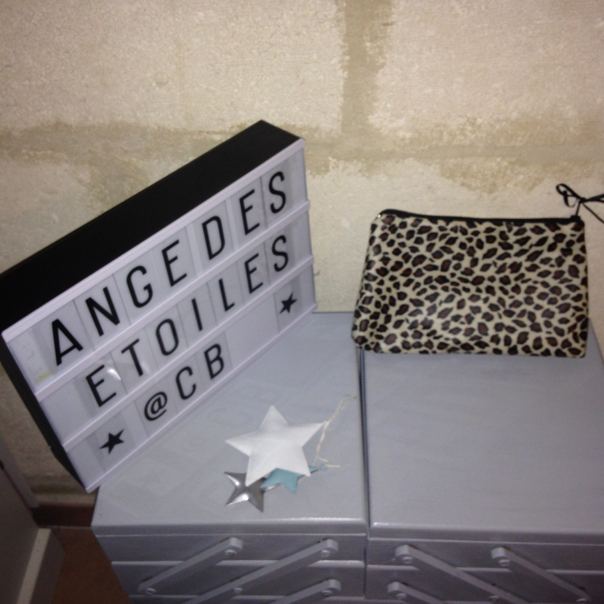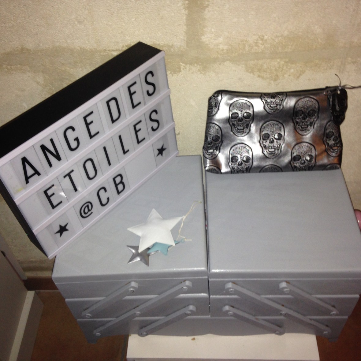 Trousse tête de mort grise intérieur tissu gris avec étoiles noires : 12€