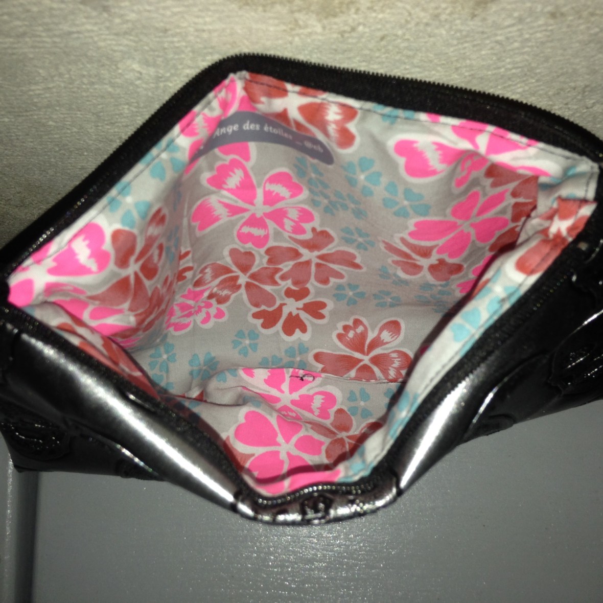 Trousse tête de mort grises intérieur tissu fleuri : 12€