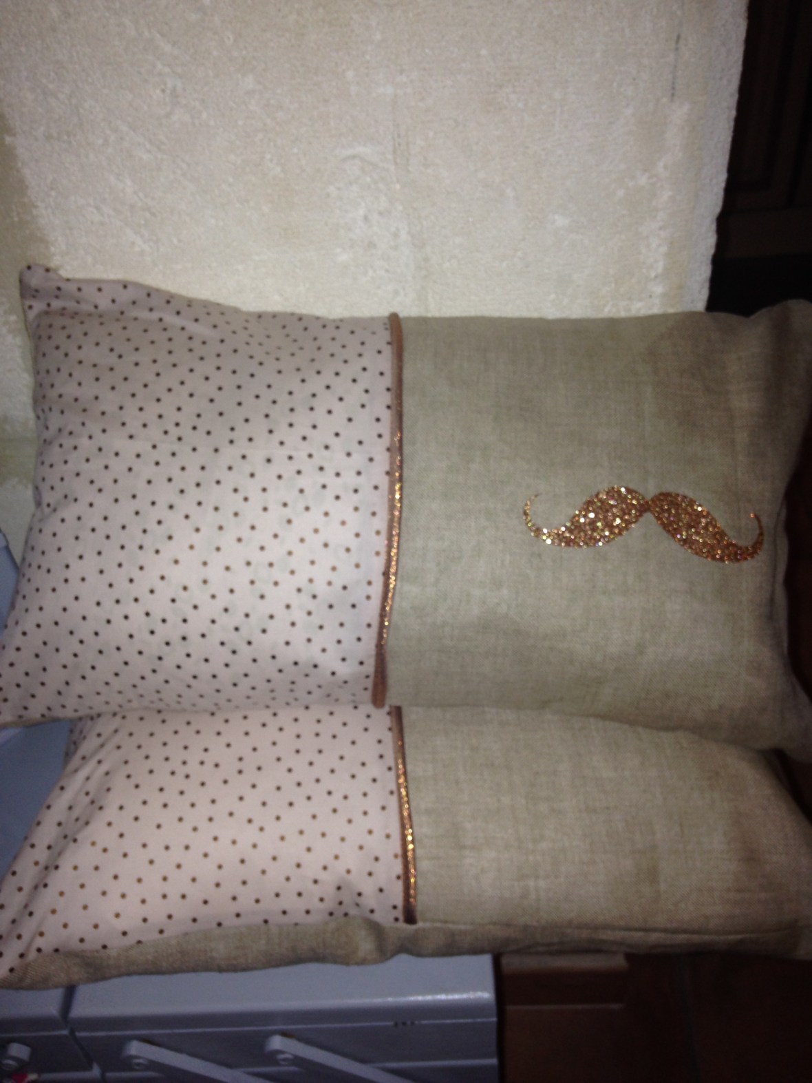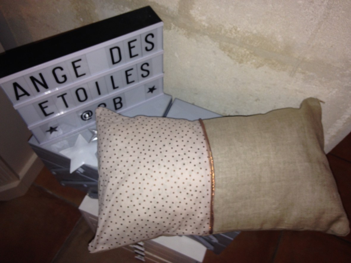 CoussinsCoussin 15 septembre 201615 septembre 2016 angedesetoiles_@cb Coussin rectangulaire 30×50 cm Tissu lin et tissu coton à pois bronze