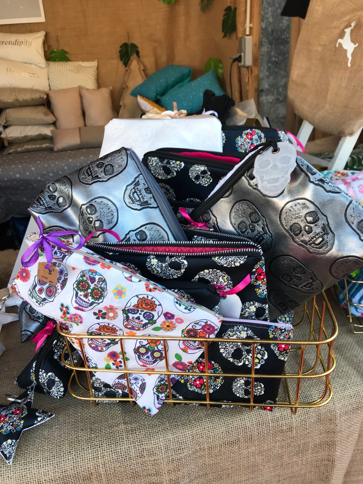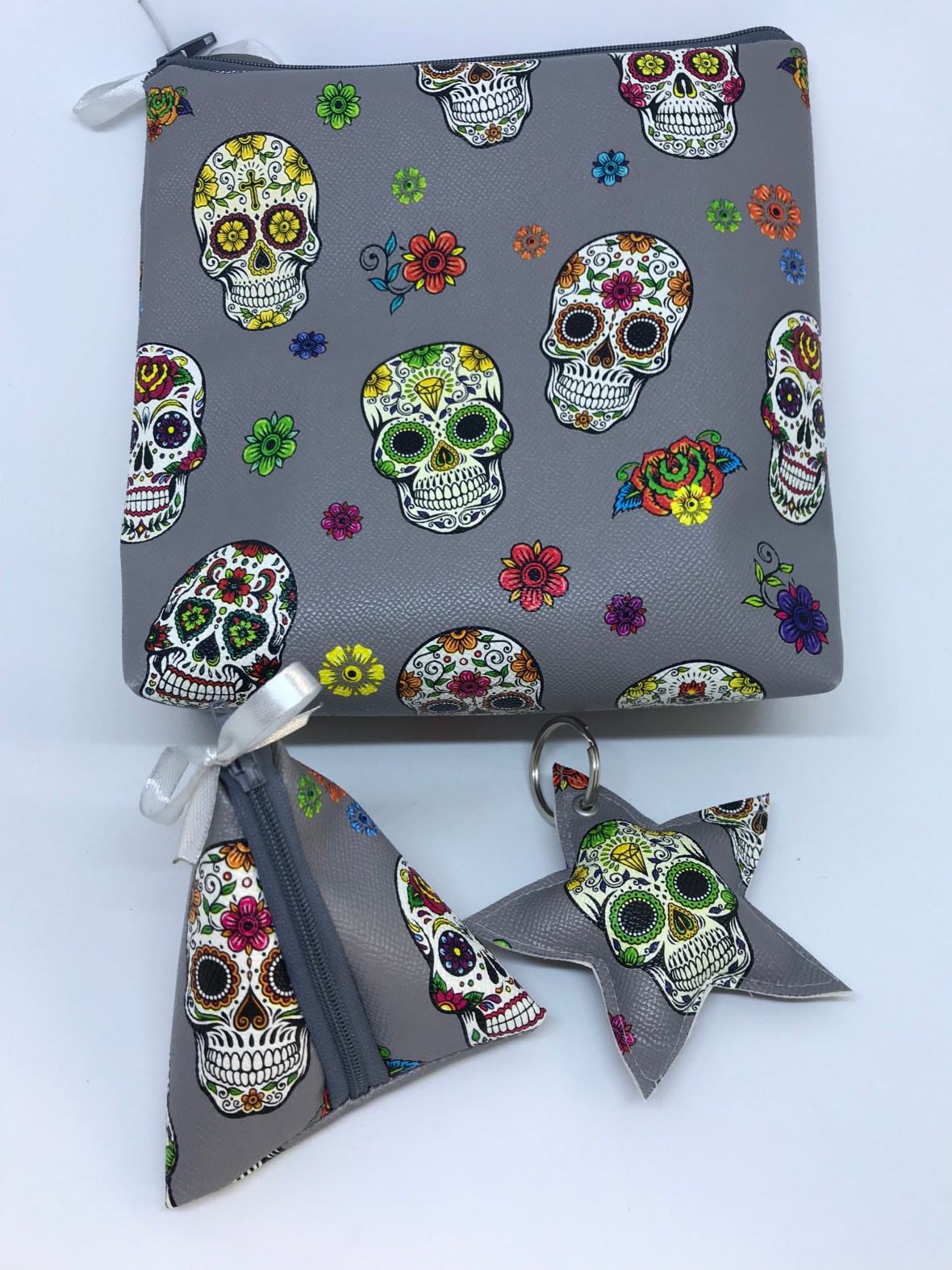 Trousse porte-clés & berlingot en tissu simili cuir tête de mort : ✨ Ange des étoiles ✨