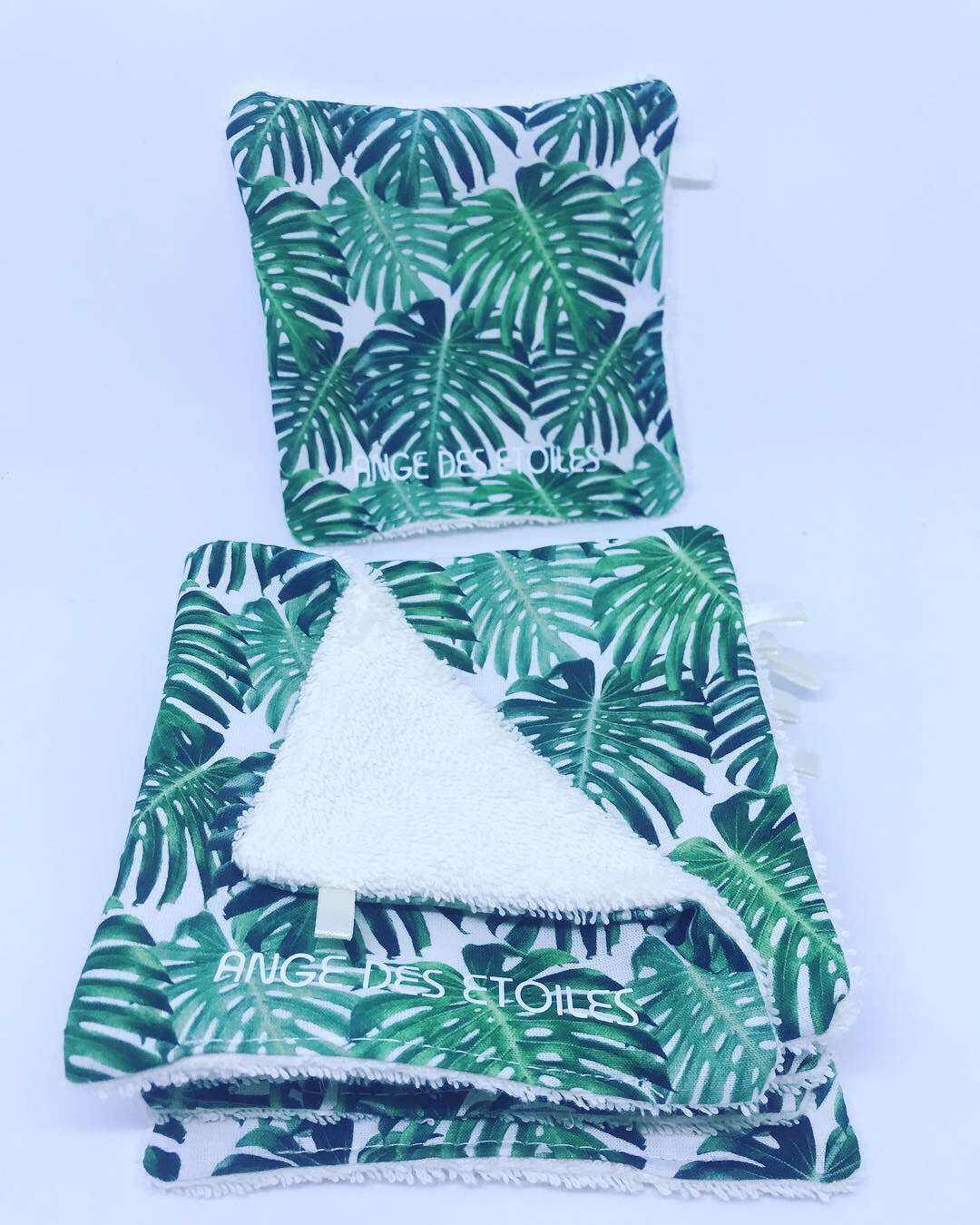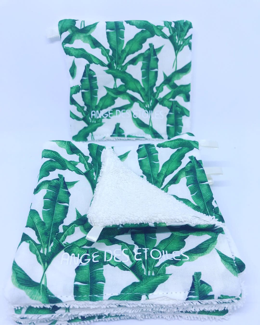 Lot de 7 éponges démaquillantes, tissu motif feuilles.