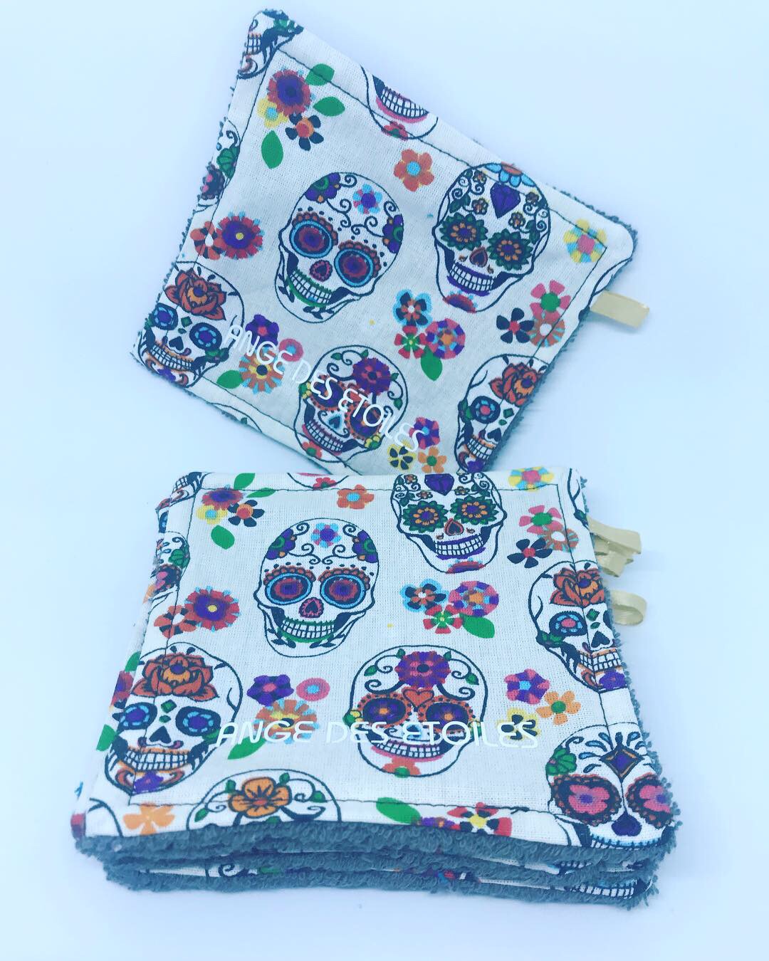 Lot de 7 éponges démaquillantes tissu tête de mort : Ange des étoiles ✨