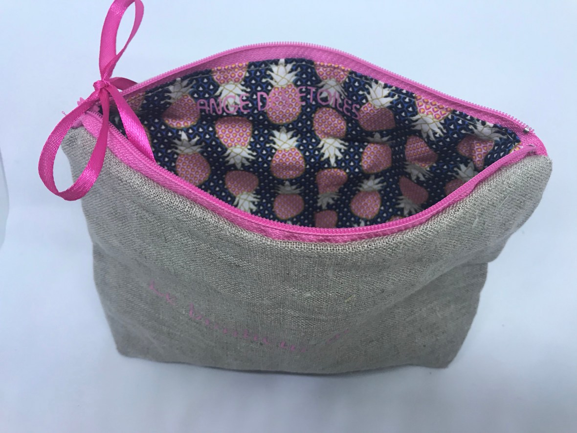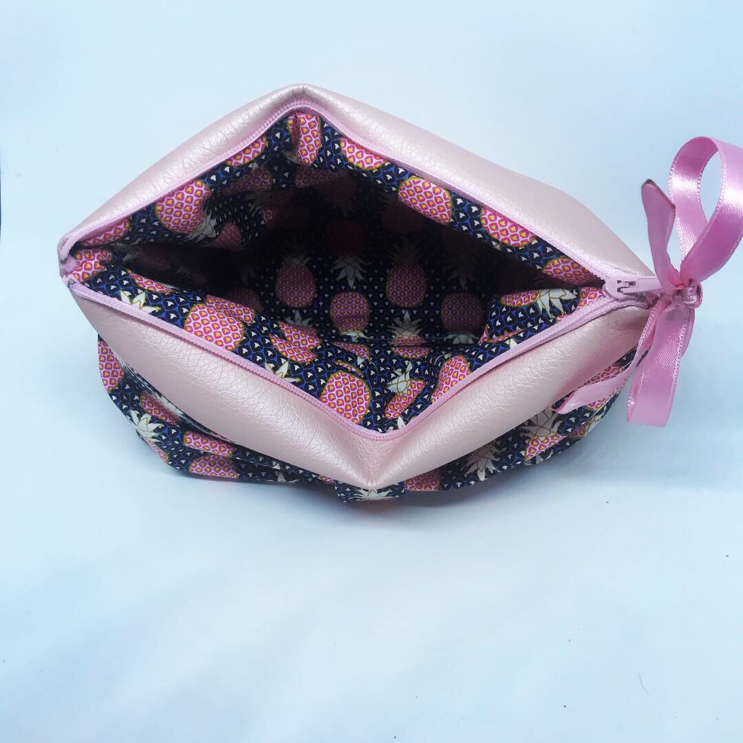 Trousse simili cuir rose et noeud tissu ananas : Ange des étoiles 🌟 : 18€