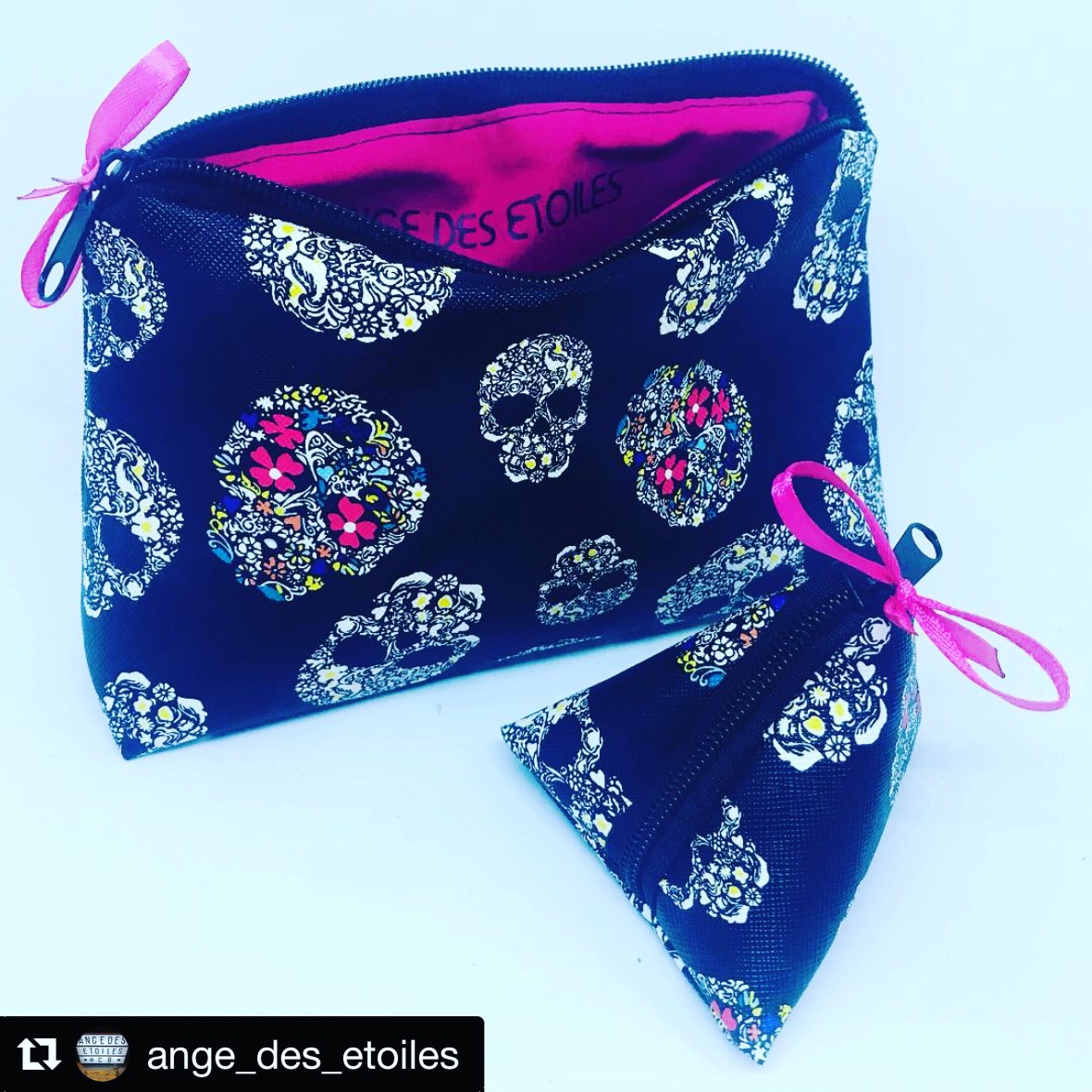 Ensemble trousse et porte monnaie tissu tête de mort : Ange des étoiles 🌟