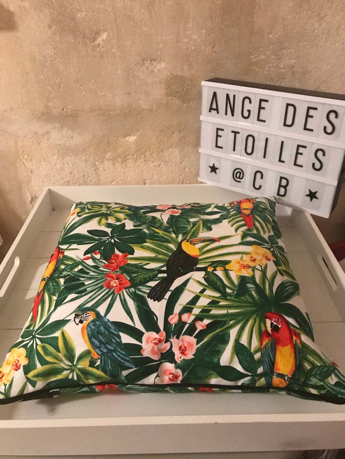 Coussin tissu feuilles jungle 45x45cm : ange des étoiles