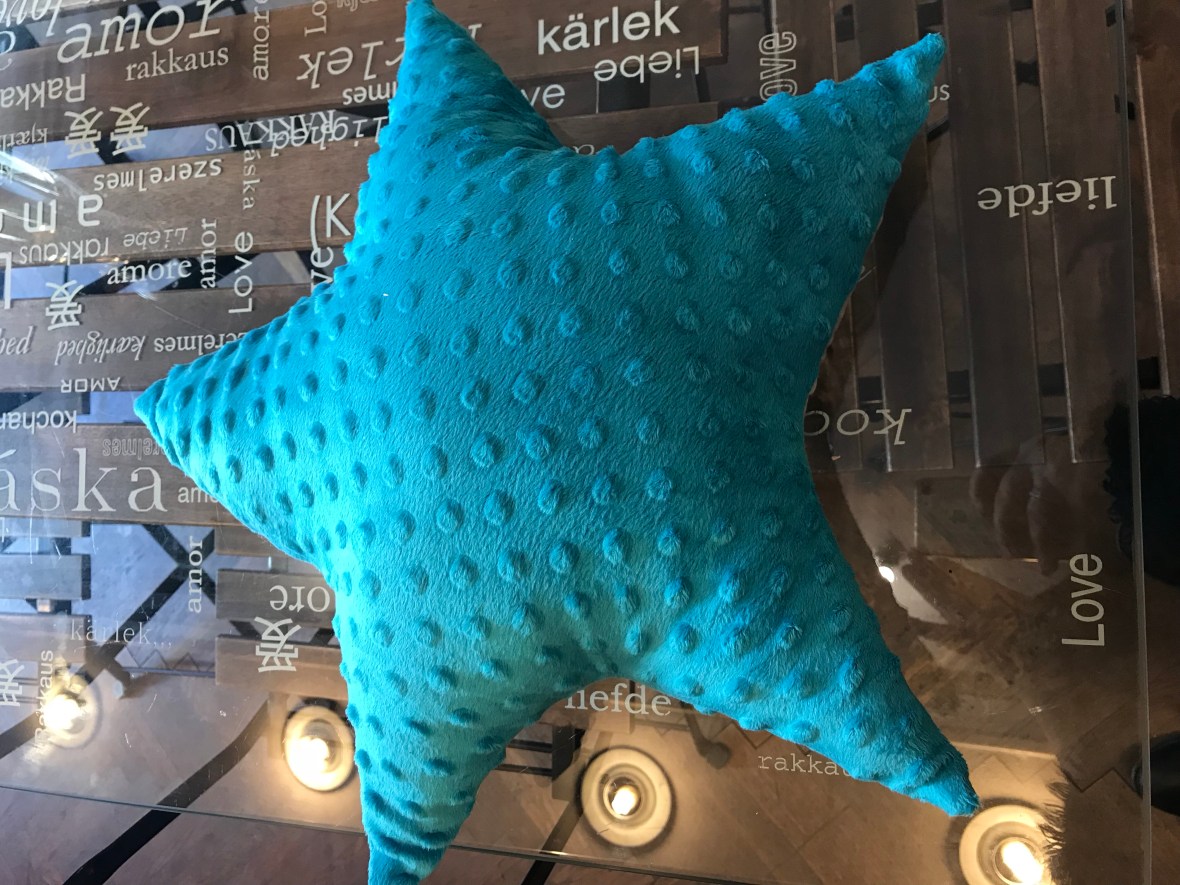 Coussin étoile bleu bi-matiere ange des étoiles